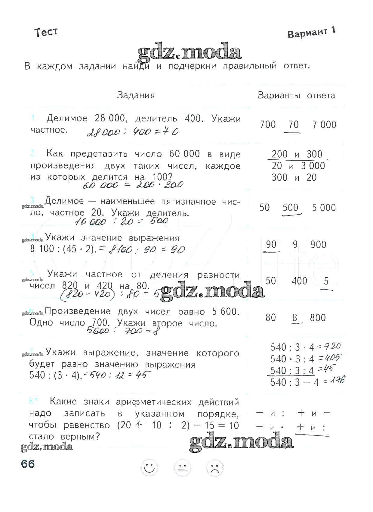 ОТВЕТ на задание № 66 Проверочные работы по Математике 4 класс Волкова Школа России