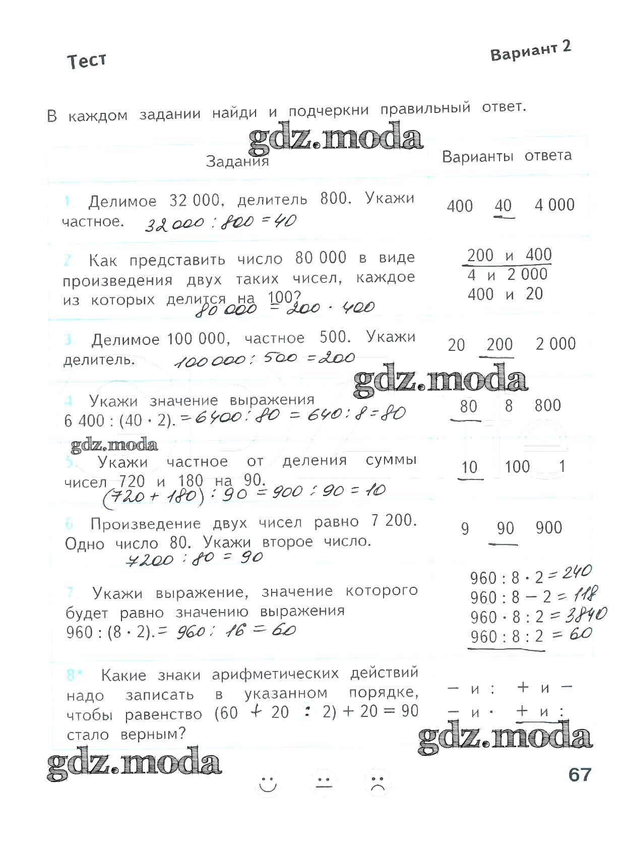 ОТВЕТ на задание № 67 Проверочные работы по Математике 4 класс Волкова Школа России