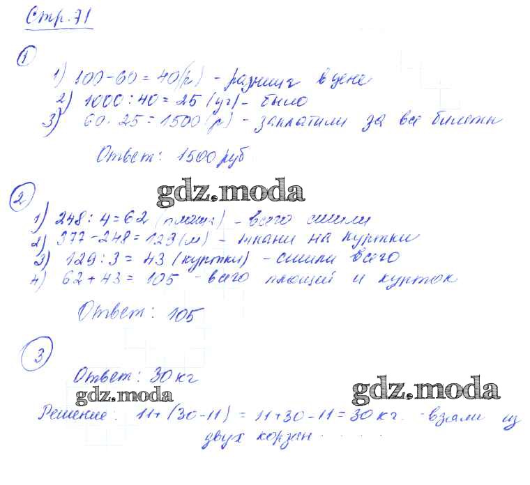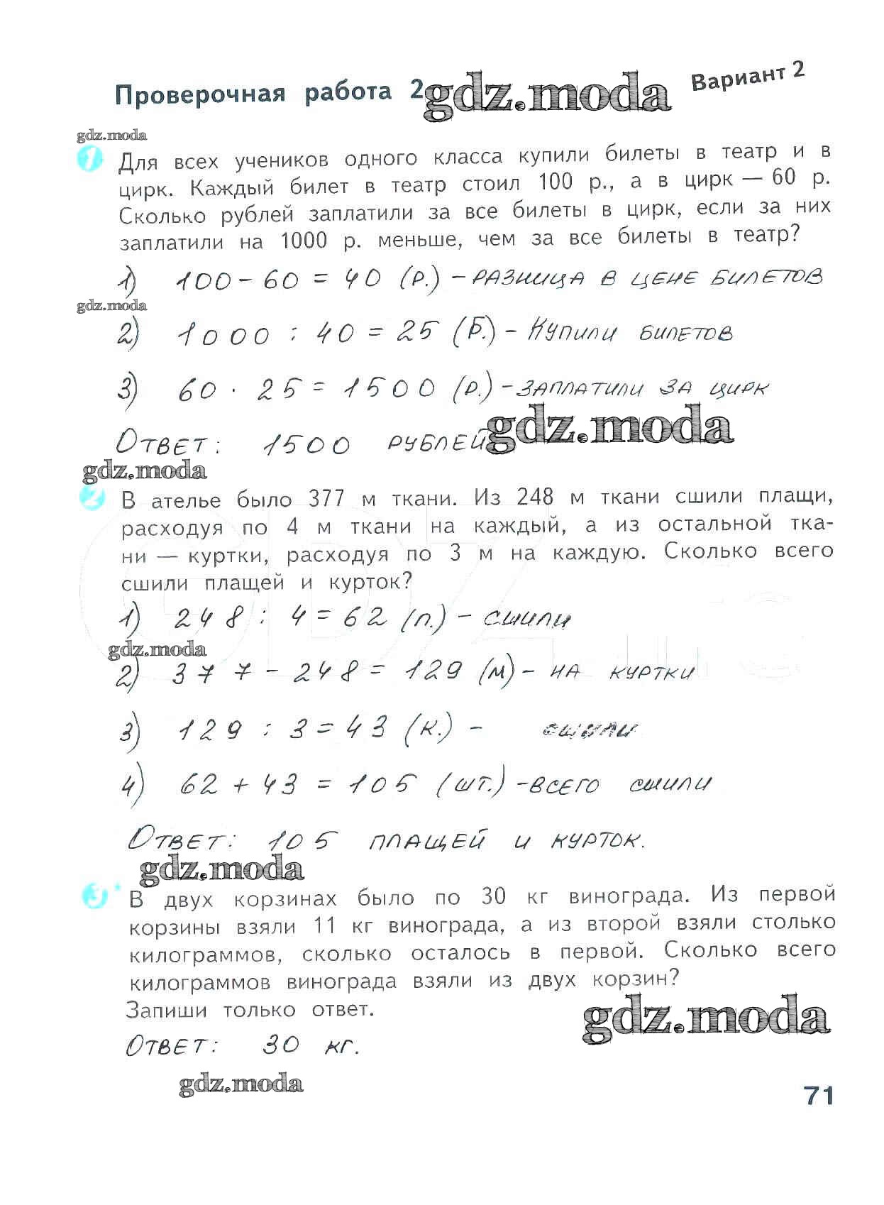 ГДЗ решение к заданию № 71 Математика 4 класс проверочные работы Волкова С.И. Просвещение 2014 ФГОС бесплатно на гдз.мода!