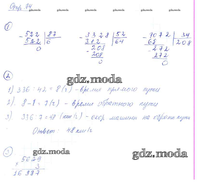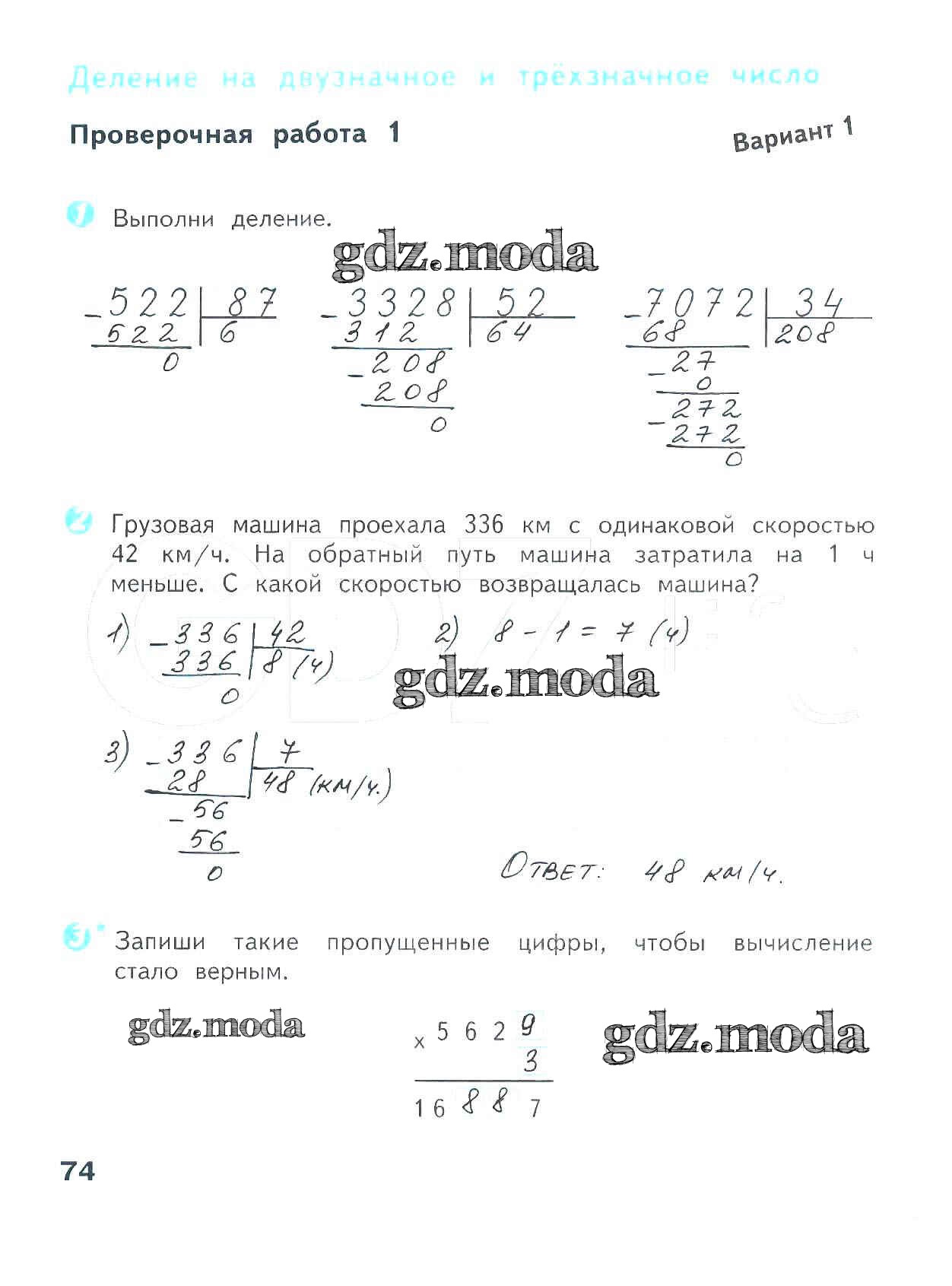 ГДЗ решение к заданию № 74 Математика 4 класс проверочные работы Волкова С.И. Просвещение 2014 ФГОС бесплатно на гдз.мода!