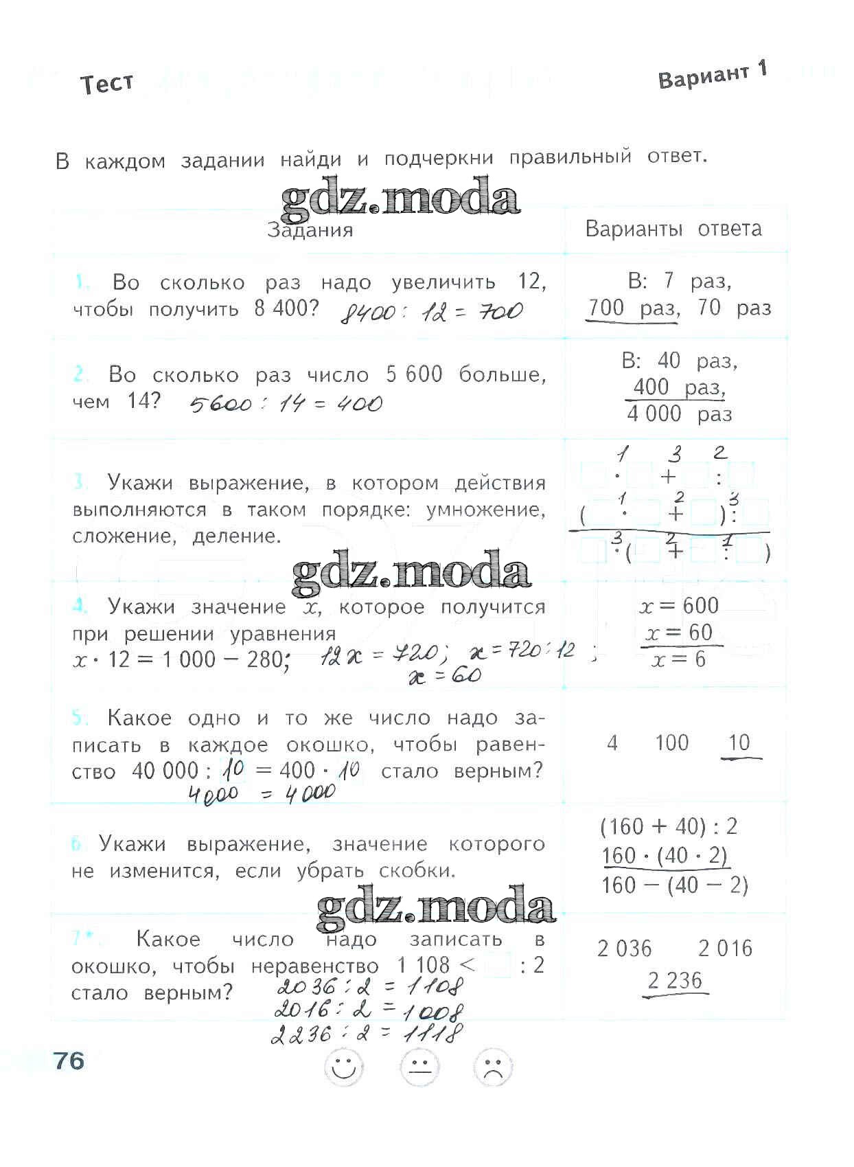 ОТВЕТ на задание № 76 Проверочные работы по Математике 4 класс Волкова Школа России