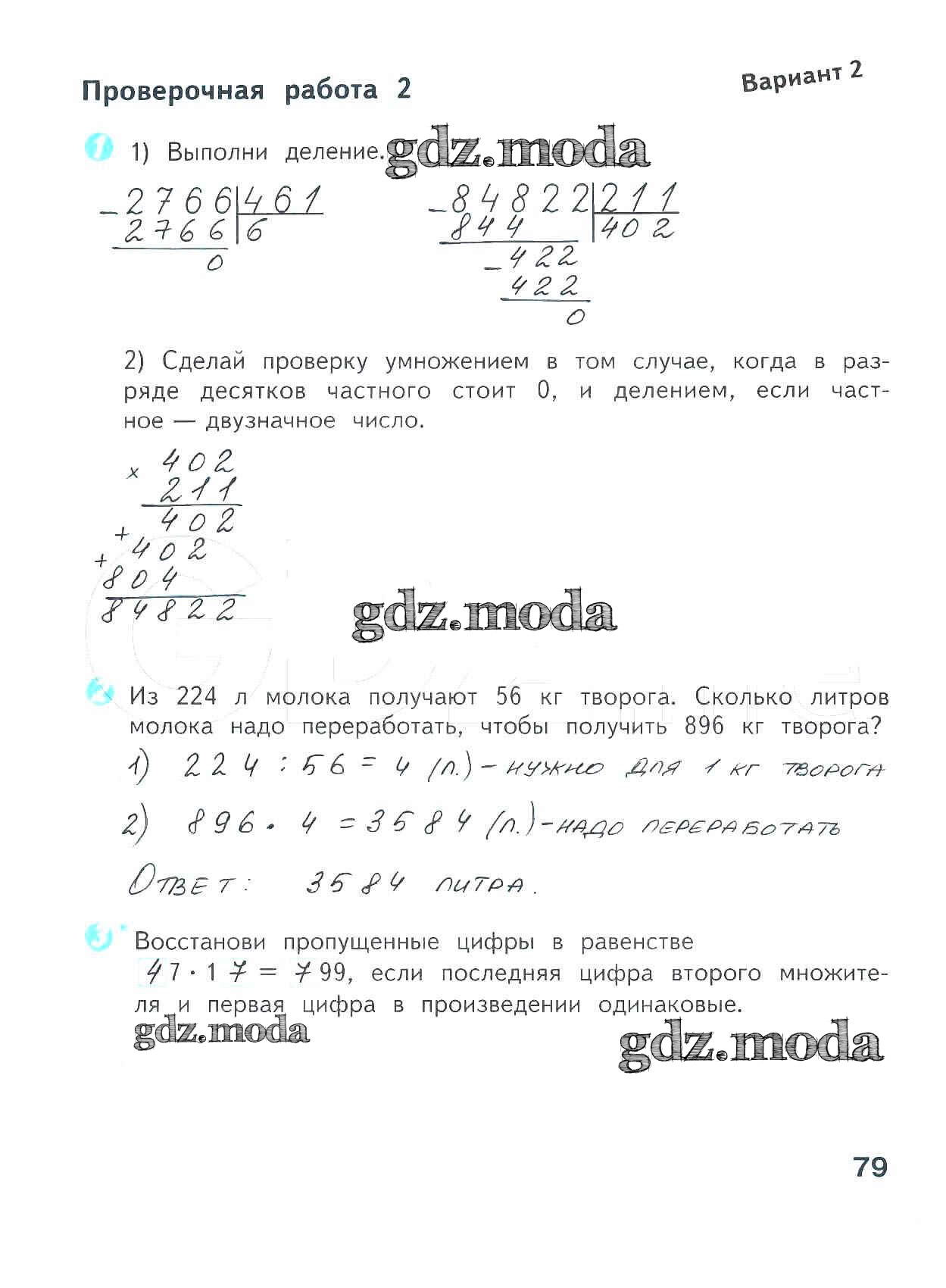 ГДЗ решение к заданию № 79 Математика 4 класс проверочные работы Волкова С.И. Просвещение 2014 ФГОС бесплатно на гдз.мода!