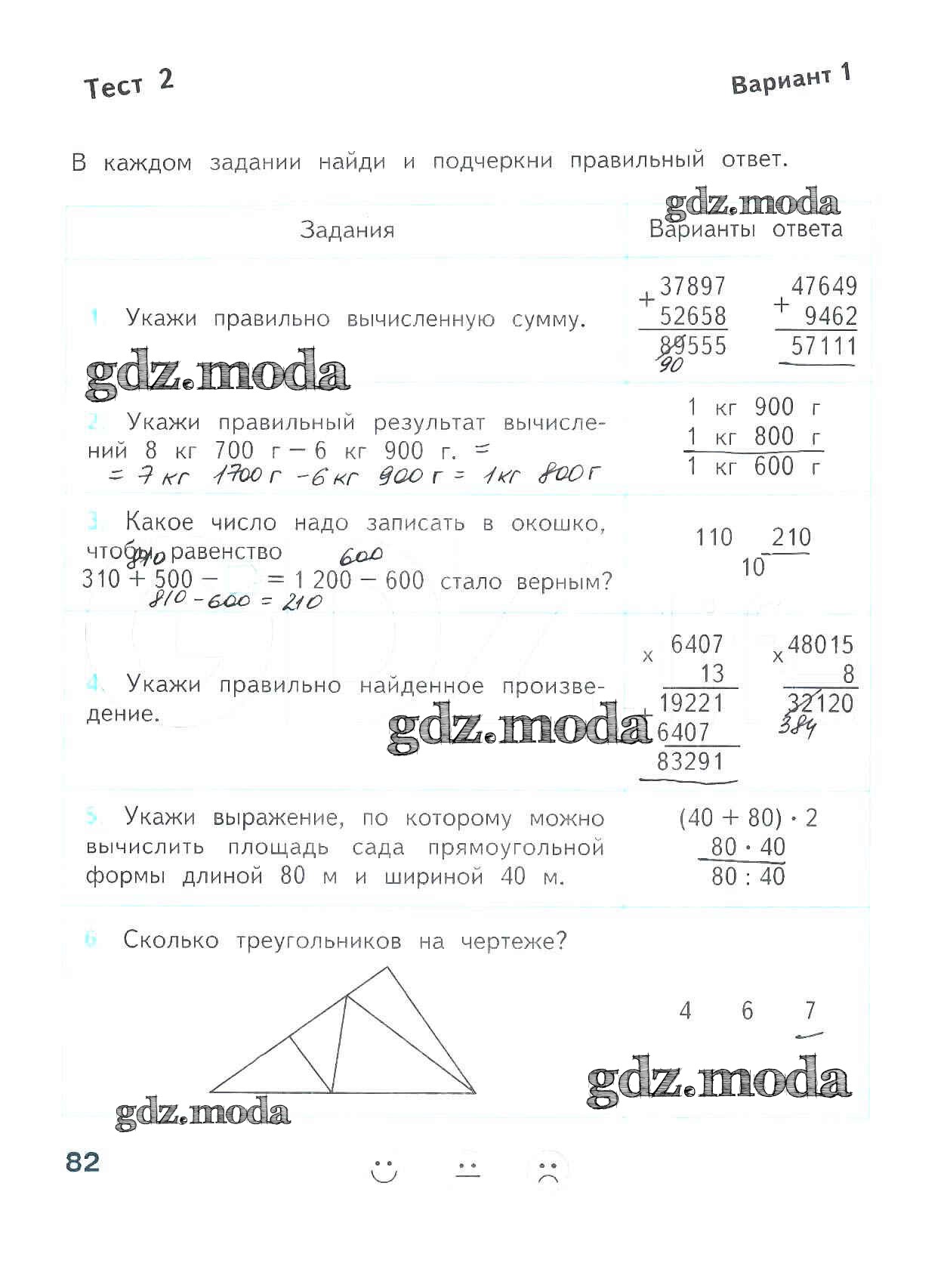 ГДЗ решение к заданию № 82 Математика 4 класс проверочные работы Волкова С.И. Просвещение 2014 ФГОС бесплатно на гдз.мода!