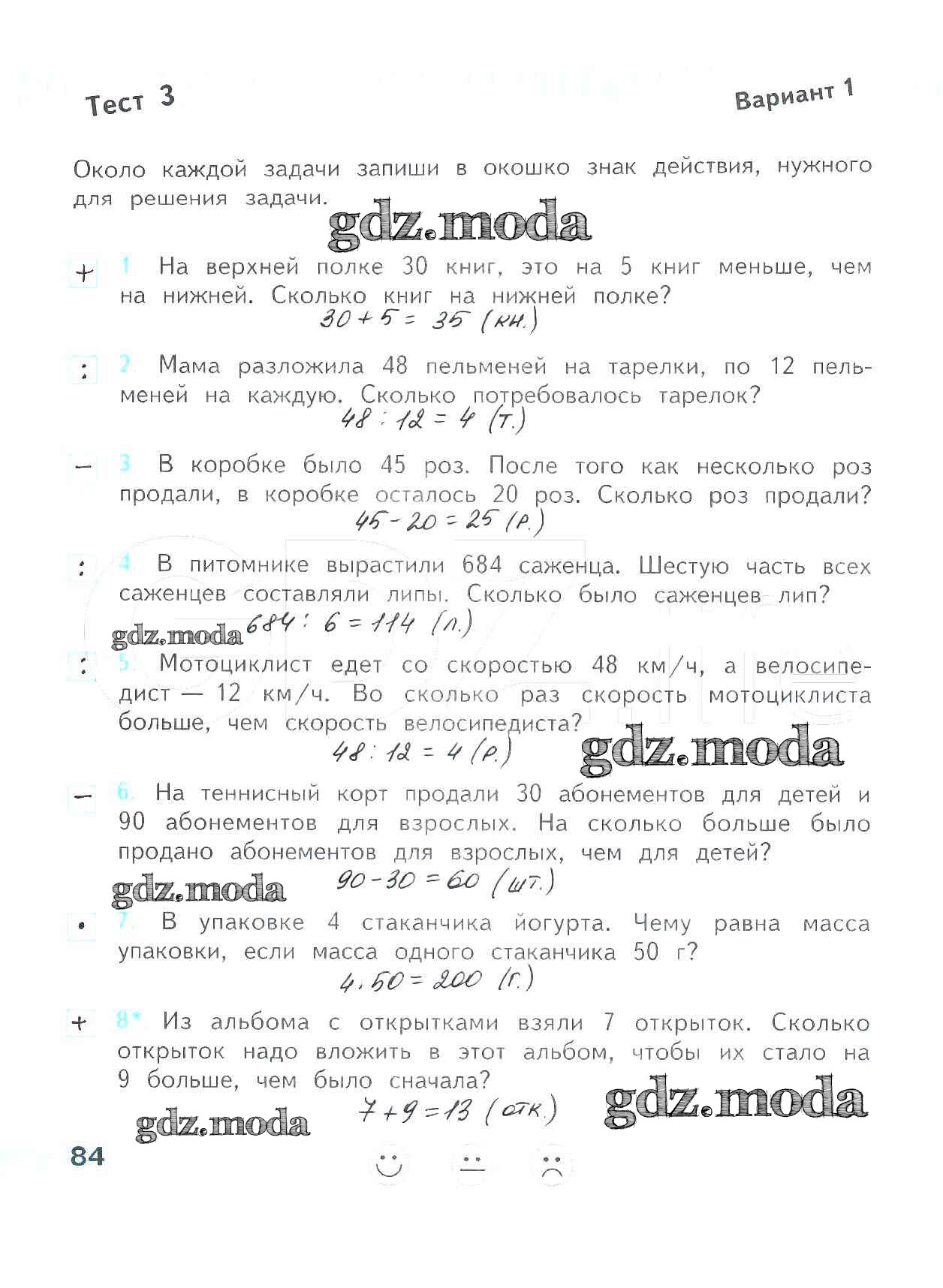ГДЗ решение к заданию № 84 Математика 4 класс проверочные работы Волкова С.И. Просвещение 2014 ФГОС бесплатно на гдз.мода!