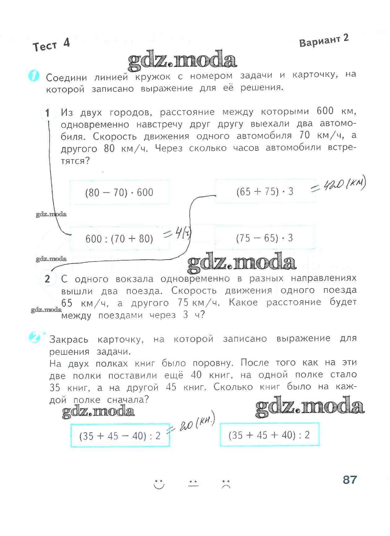 ГДЗ решение к заданию № 87 Математика 4 класс проверочные работы Волкова С.И. Просвещение 2014 ФГОС бесплатно на гдз.мода!
