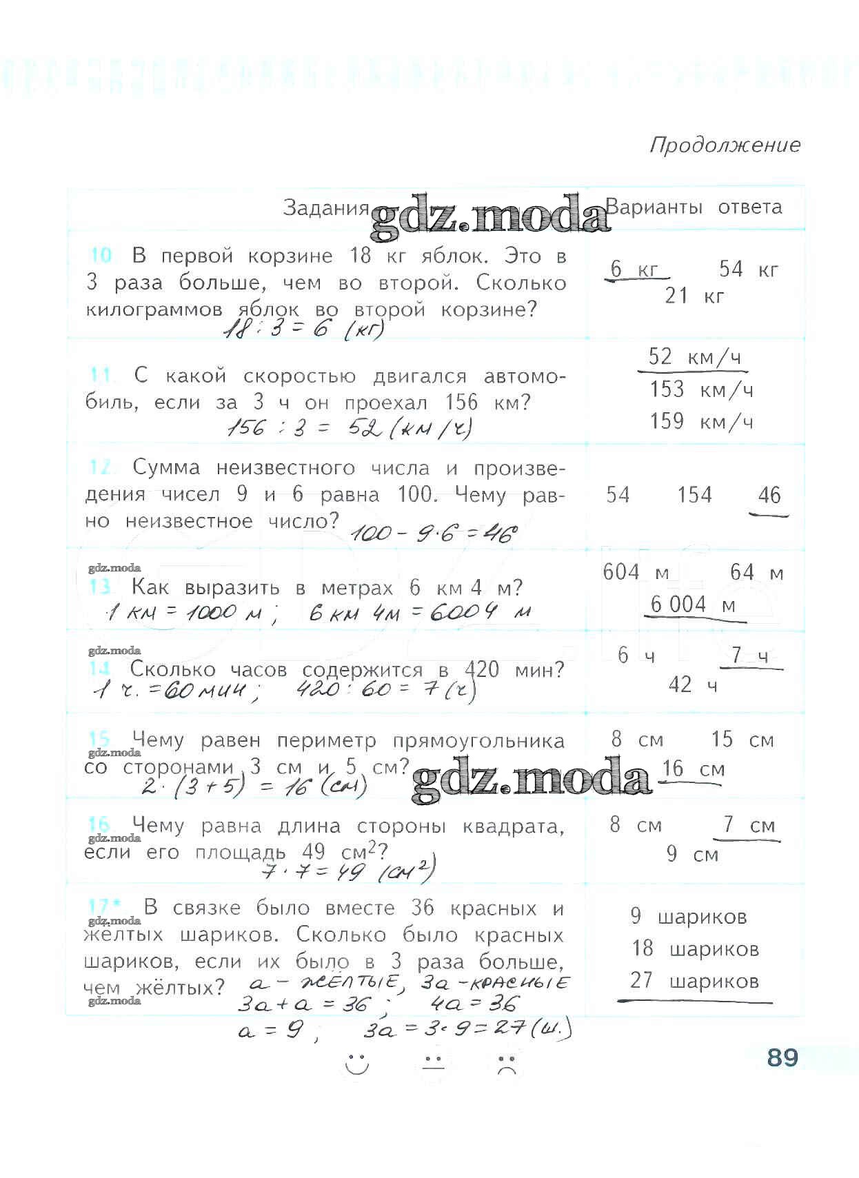 ГДЗ решение к заданию № 89 Математика 4 класс проверочные работы Волкова С.И. Просвещение 2014 ФГОС бесплатно на гдз.мода!