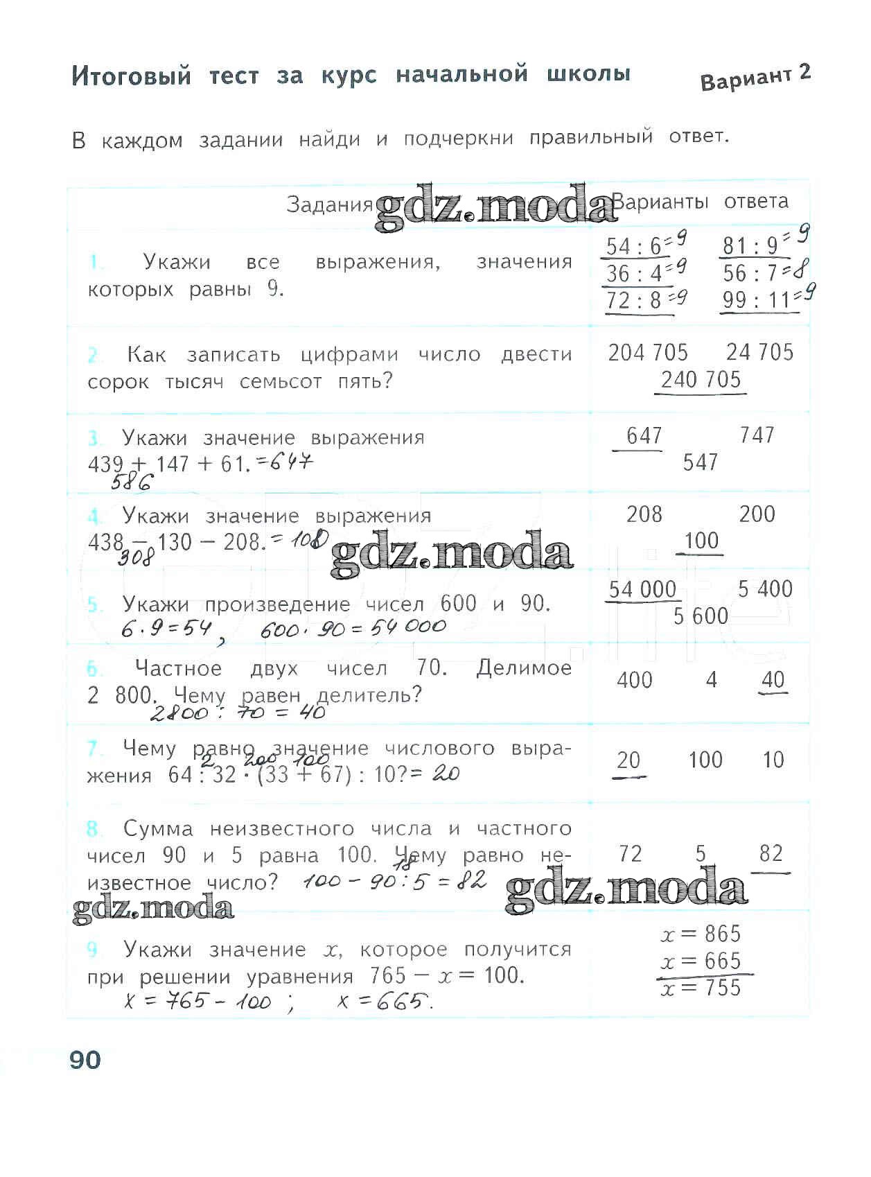 ГДЗ решение к заданию № 90 Математика 4 класс проверочные работы Волкова С.И. Просвещение 2014 ФГОС бесплатно на гдз.мода!