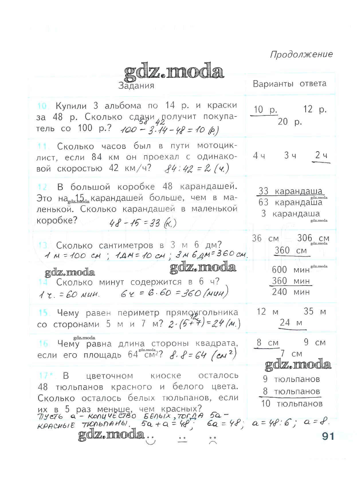 ГДЗ решение к заданию № 91 Математика 4 класс проверочные работы Волкова С.И. Просвещение 2014 ФГОС бесплатно на гдз.мода!