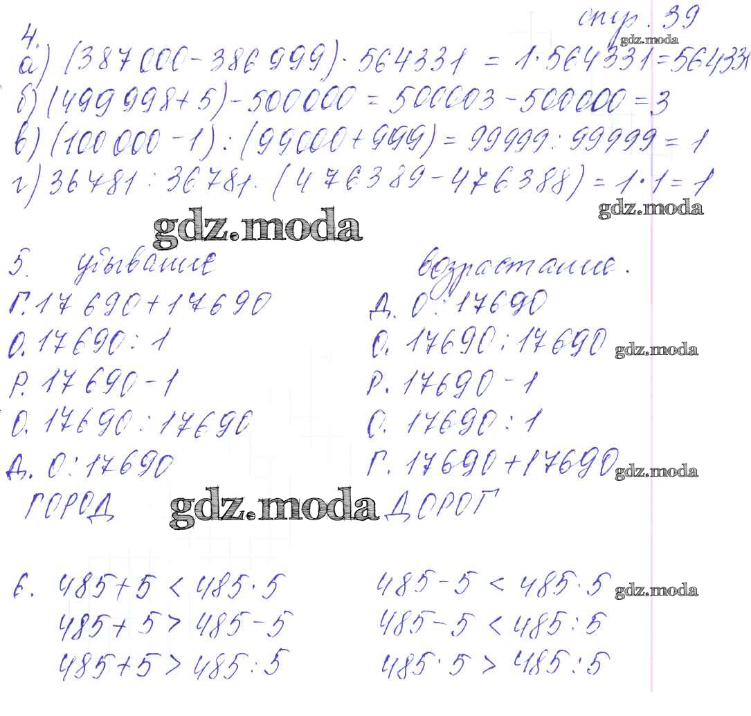 ОТВЕТ на задание № 39 Рабочая тетрадь по Математике 4 класс Башмаков Планета знаний