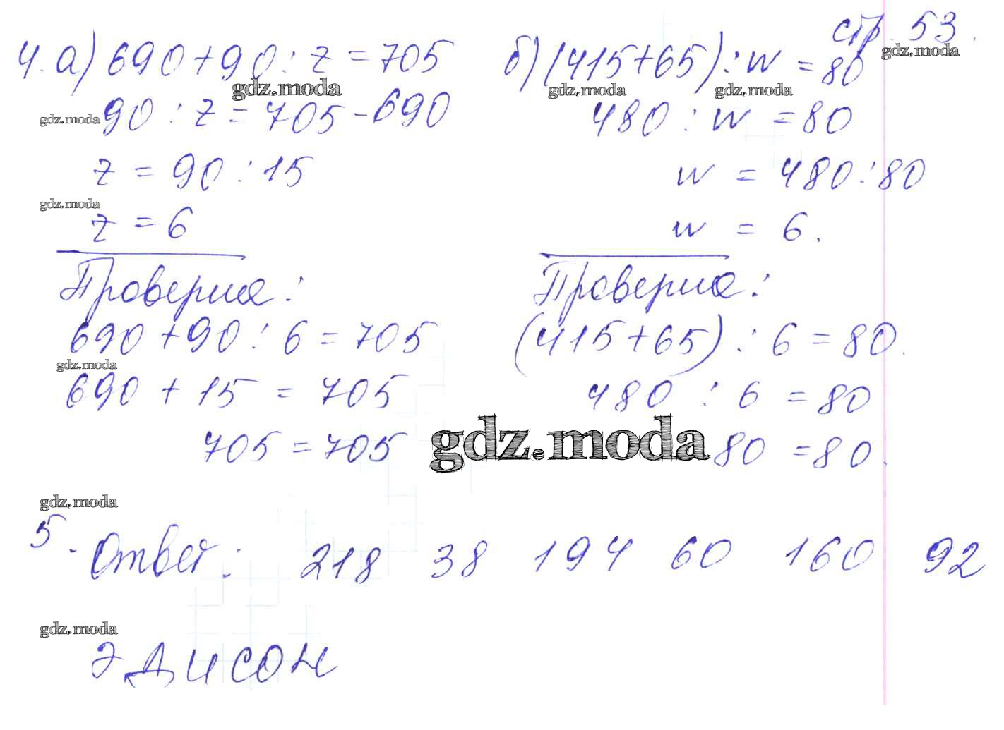ОТВЕТ на задание № 53 Рабочая тетрадь по Математике 4 класс Башмаков Планета знаний