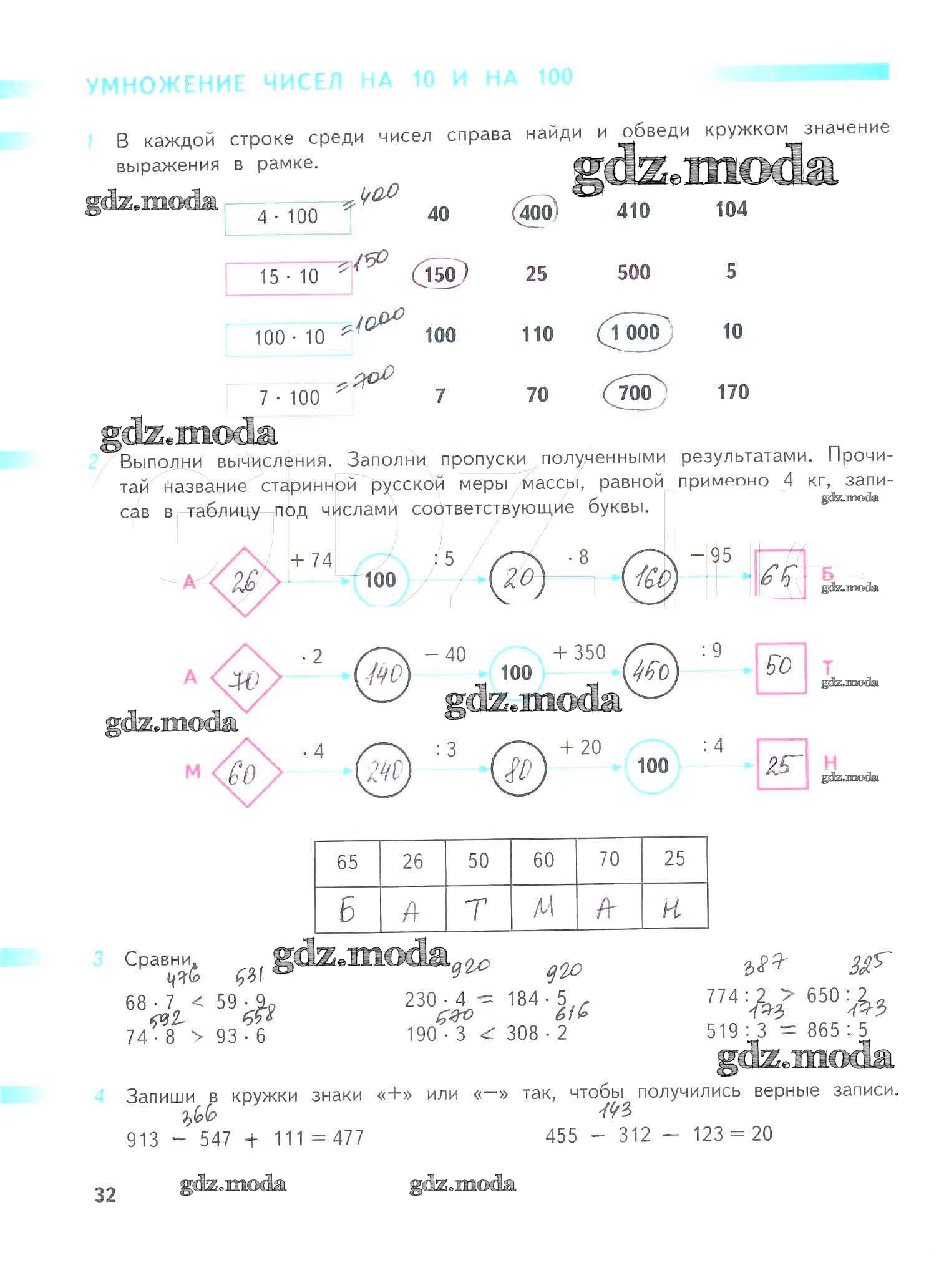 ОТВЕТ на задание № 32 Рабочая тетрадь по Математике 4 класс Дорофеев Перспектива