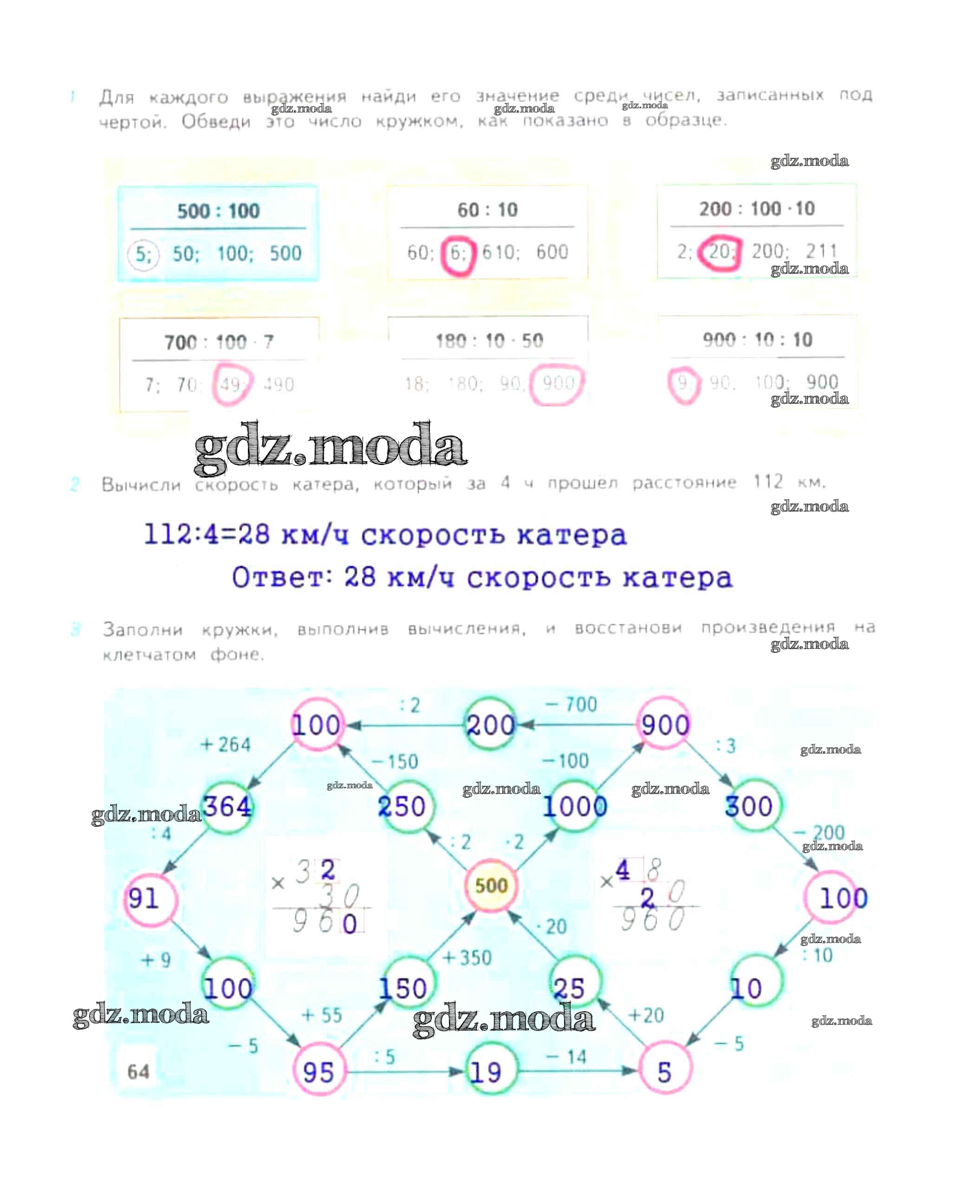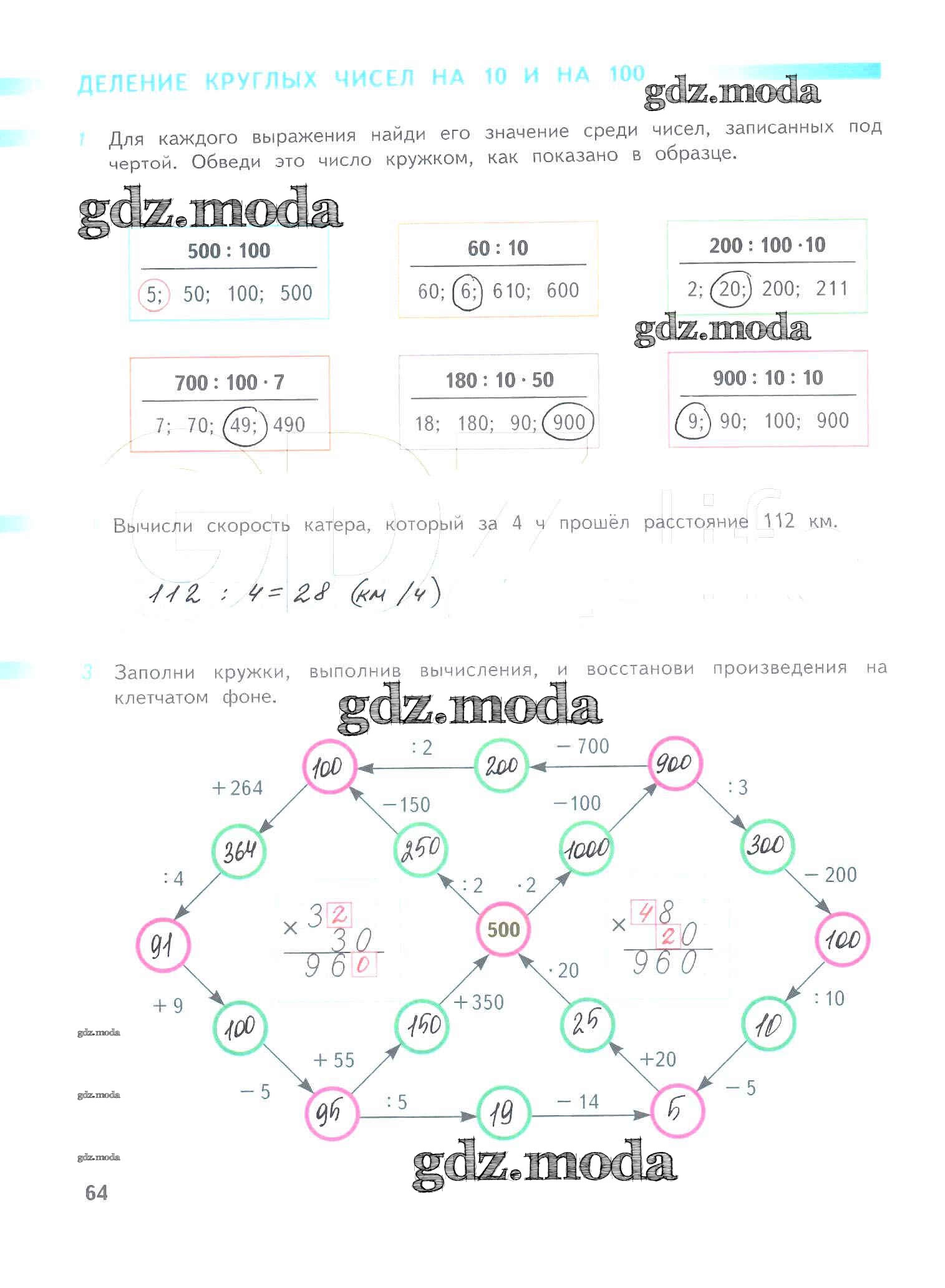 ОТВЕТ на задание № 64 Рабочая тетрадь по Математике 4 класс Дорофеев Перспектива