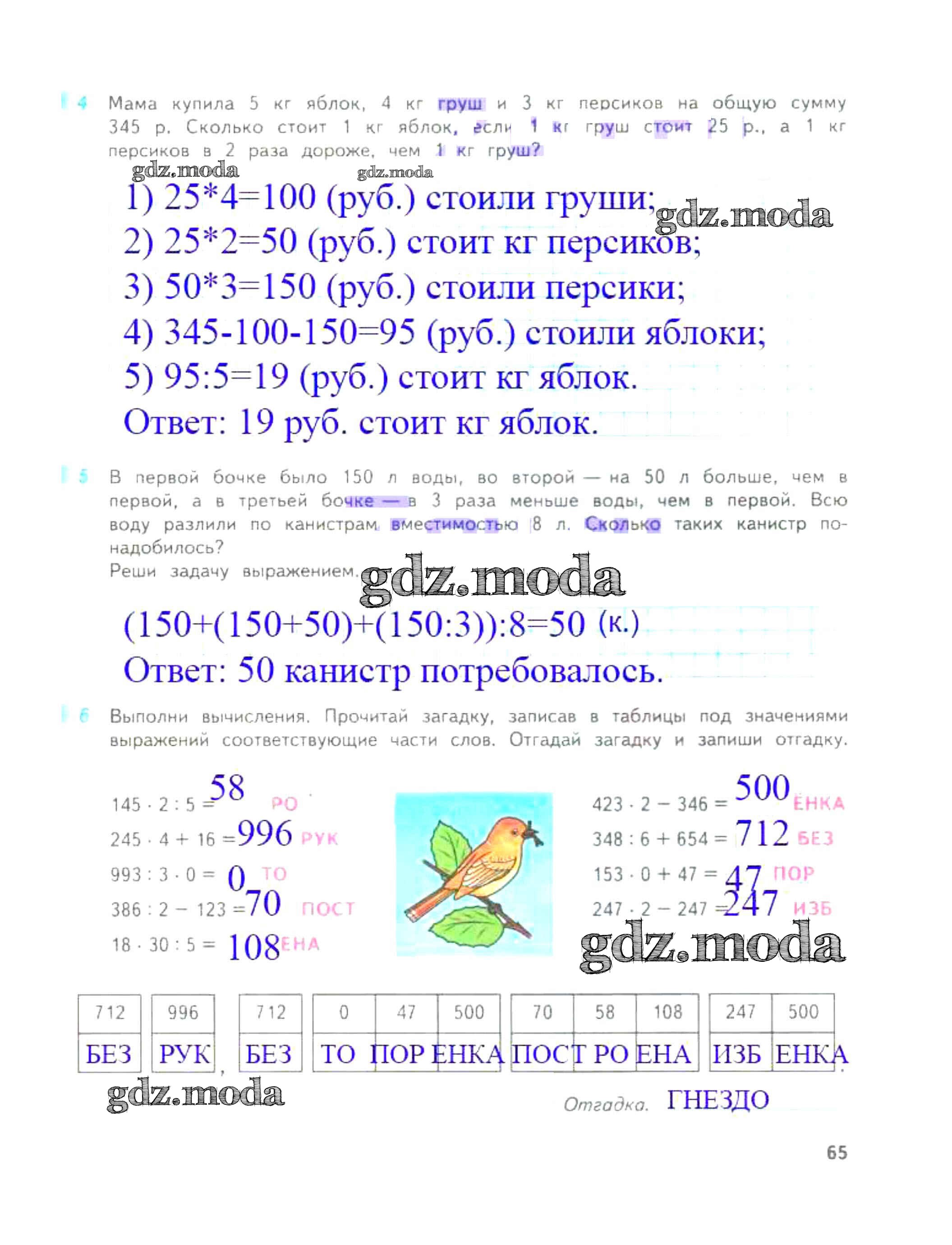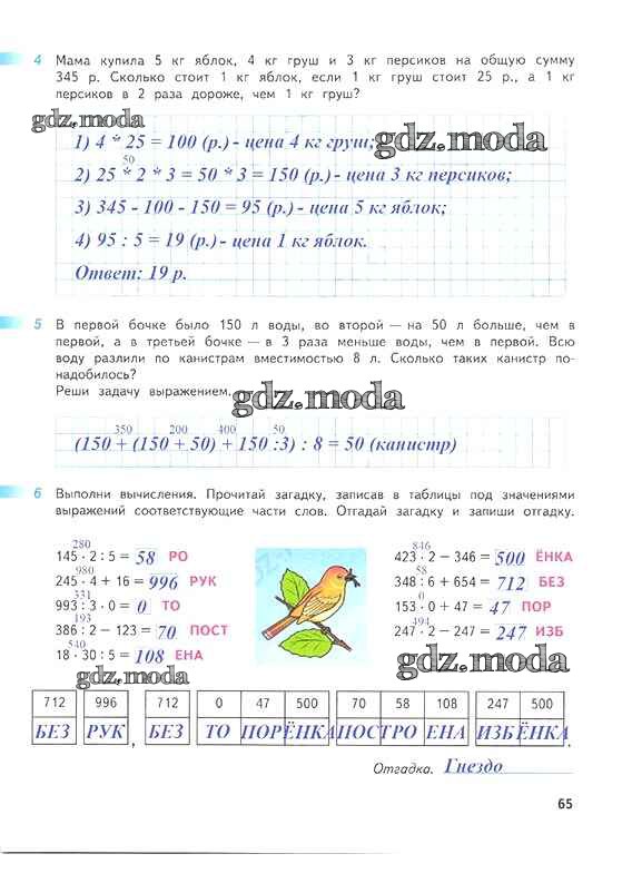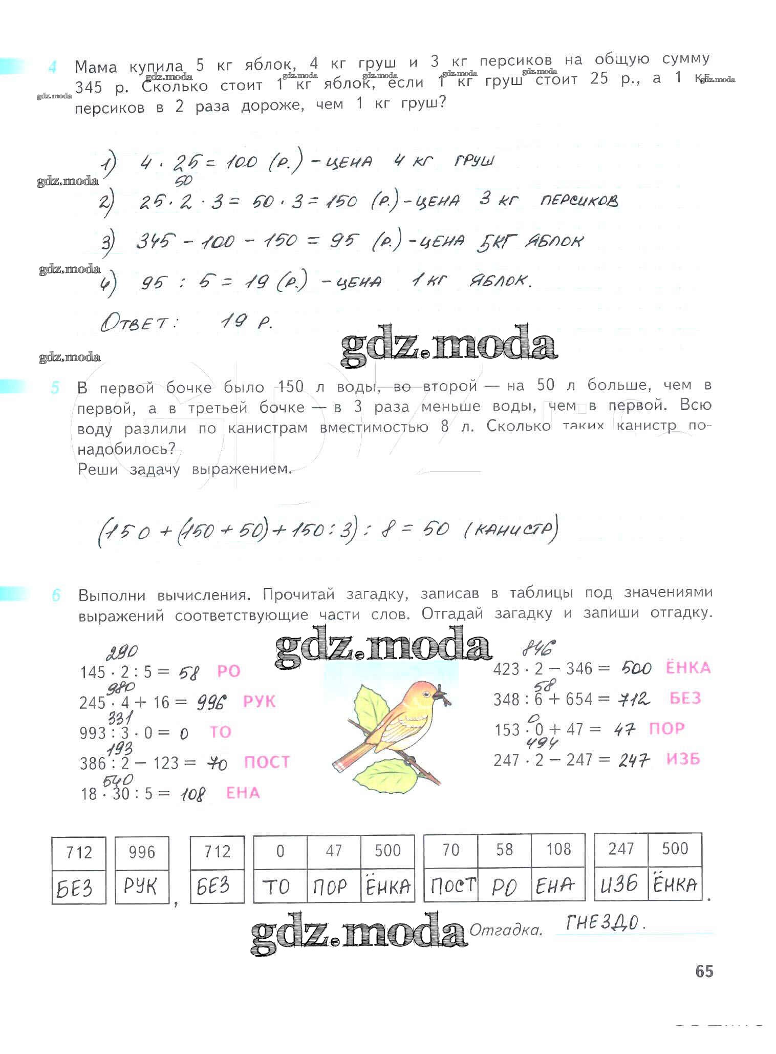ОТВЕТ на задание № 65 Рабочая тетрадь по Математике 4 класс Дорофеев Перспектива