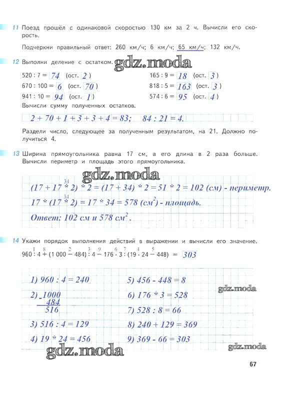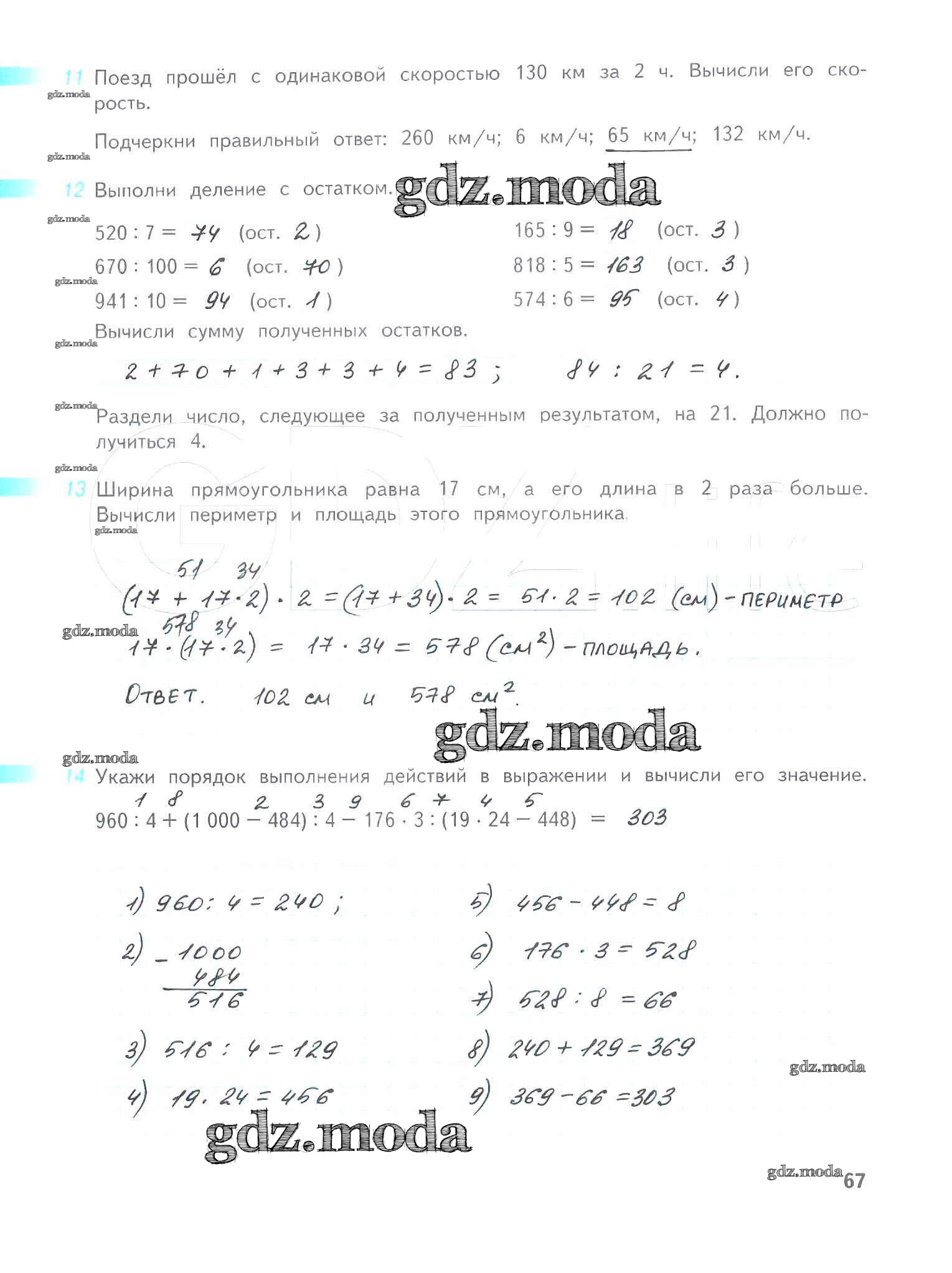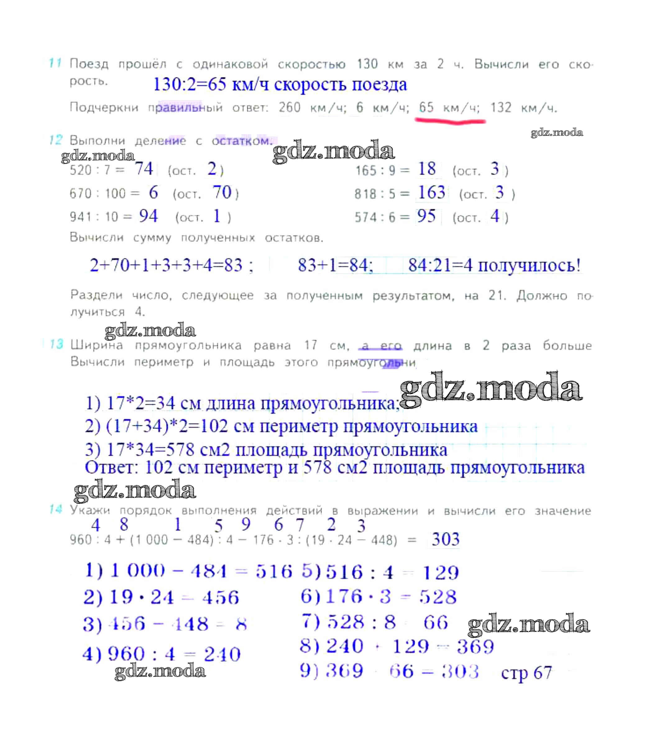 ОТВЕТ на задание № 67 Рабочая тетрадь по Математике 4 класс Дорофеев Перспектива
