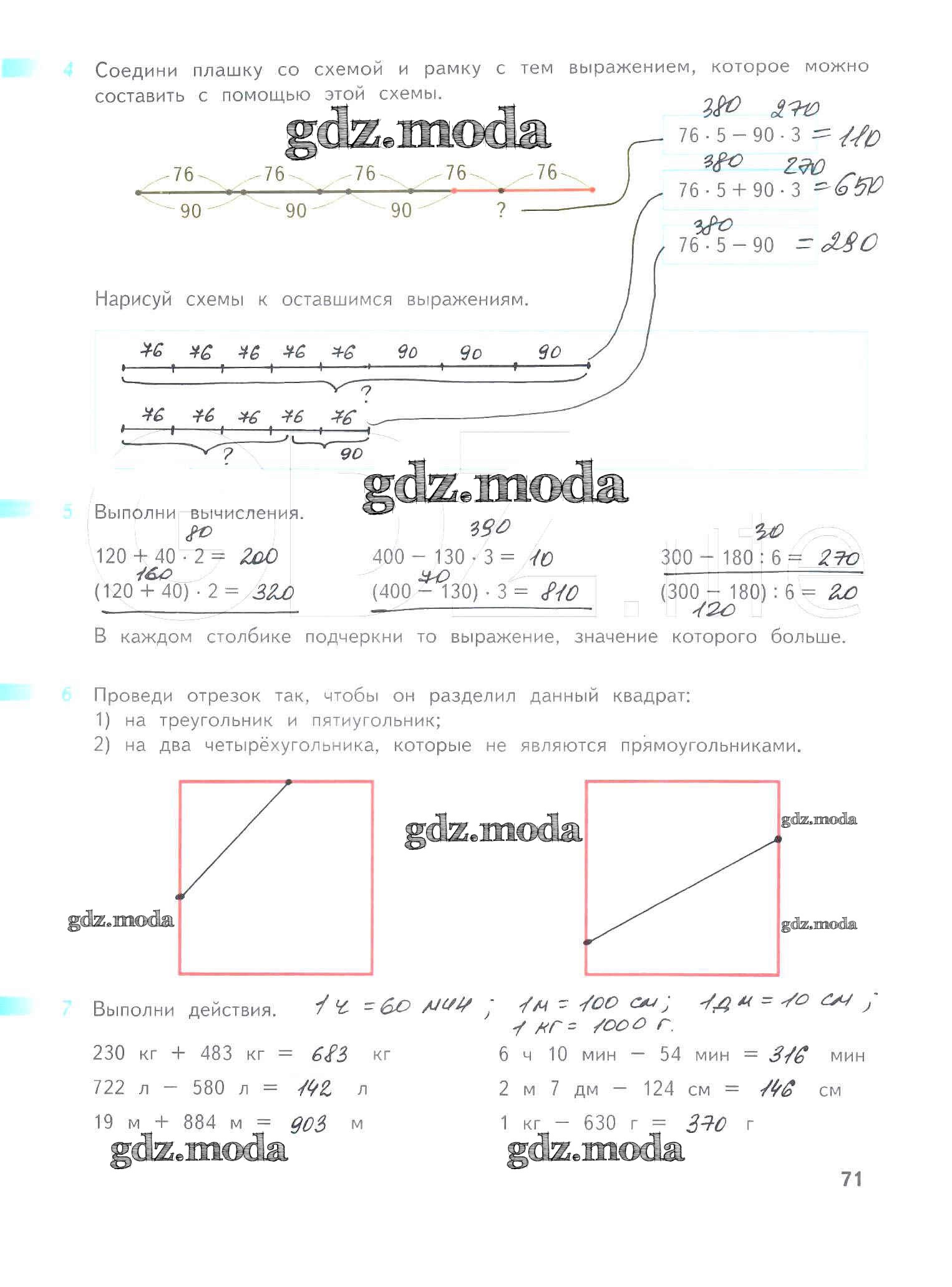 ОТВЕТ на задание № 71 Рабочая тетрадь по Математике 4 класс Дорофеев Перспектива