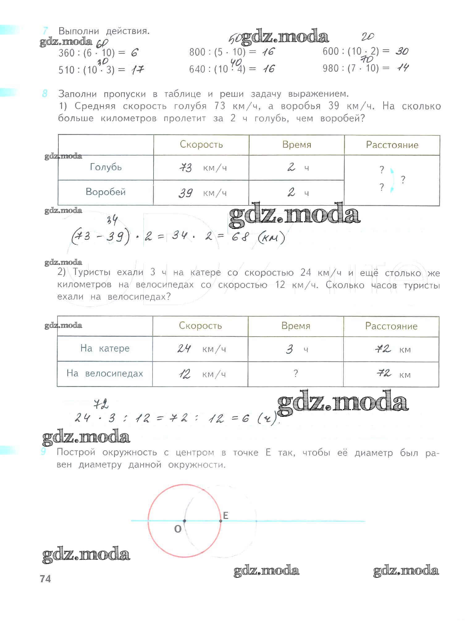 ОТВЕТ на задание № 74 Рабочая тетрадь по Математике 4 класс Дорофеев Перспектива