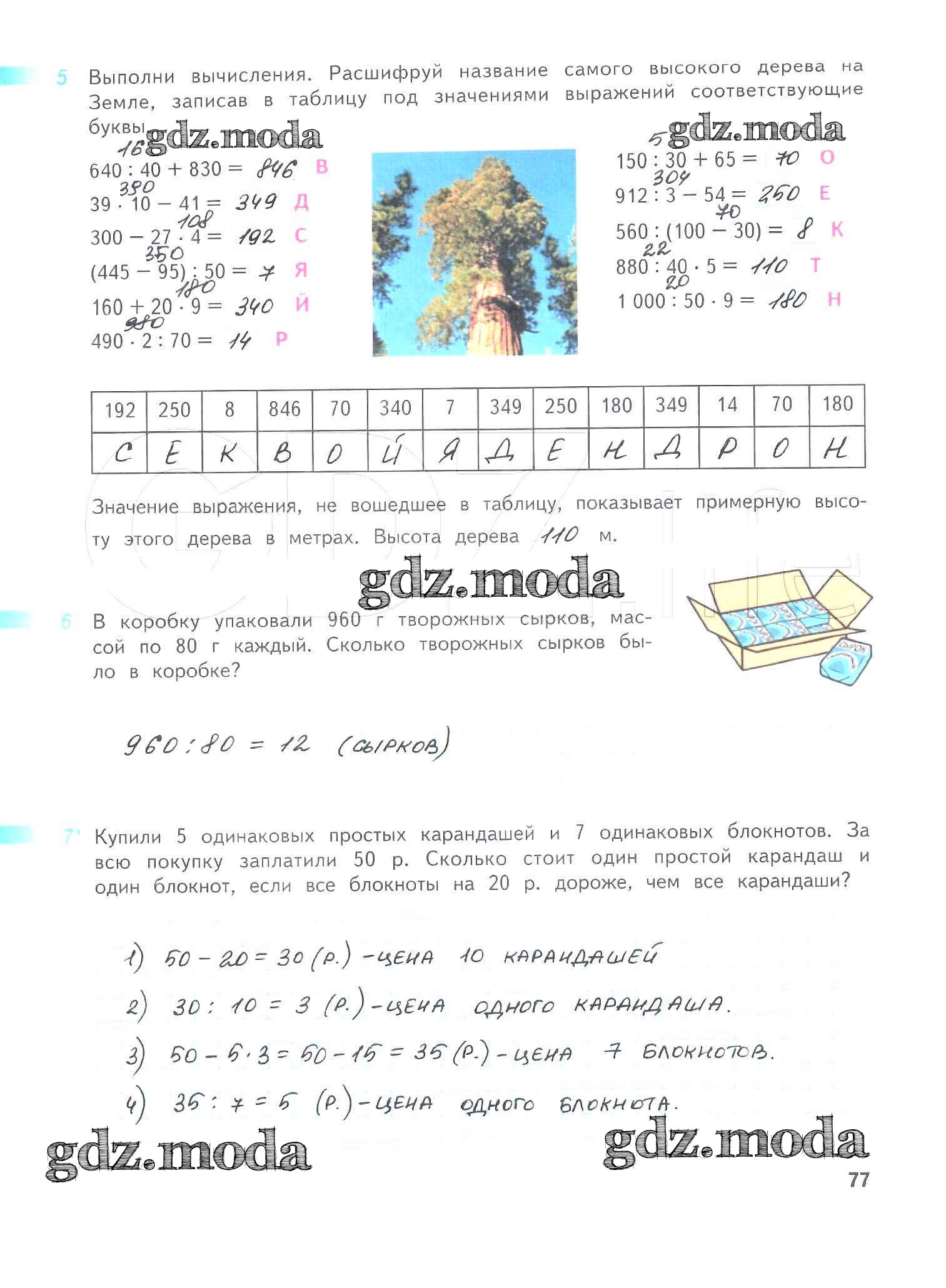 ОТВЕТ на задание № 77 Рабочая тетрадь по Математике 4 класс Дорофеев Перспектива