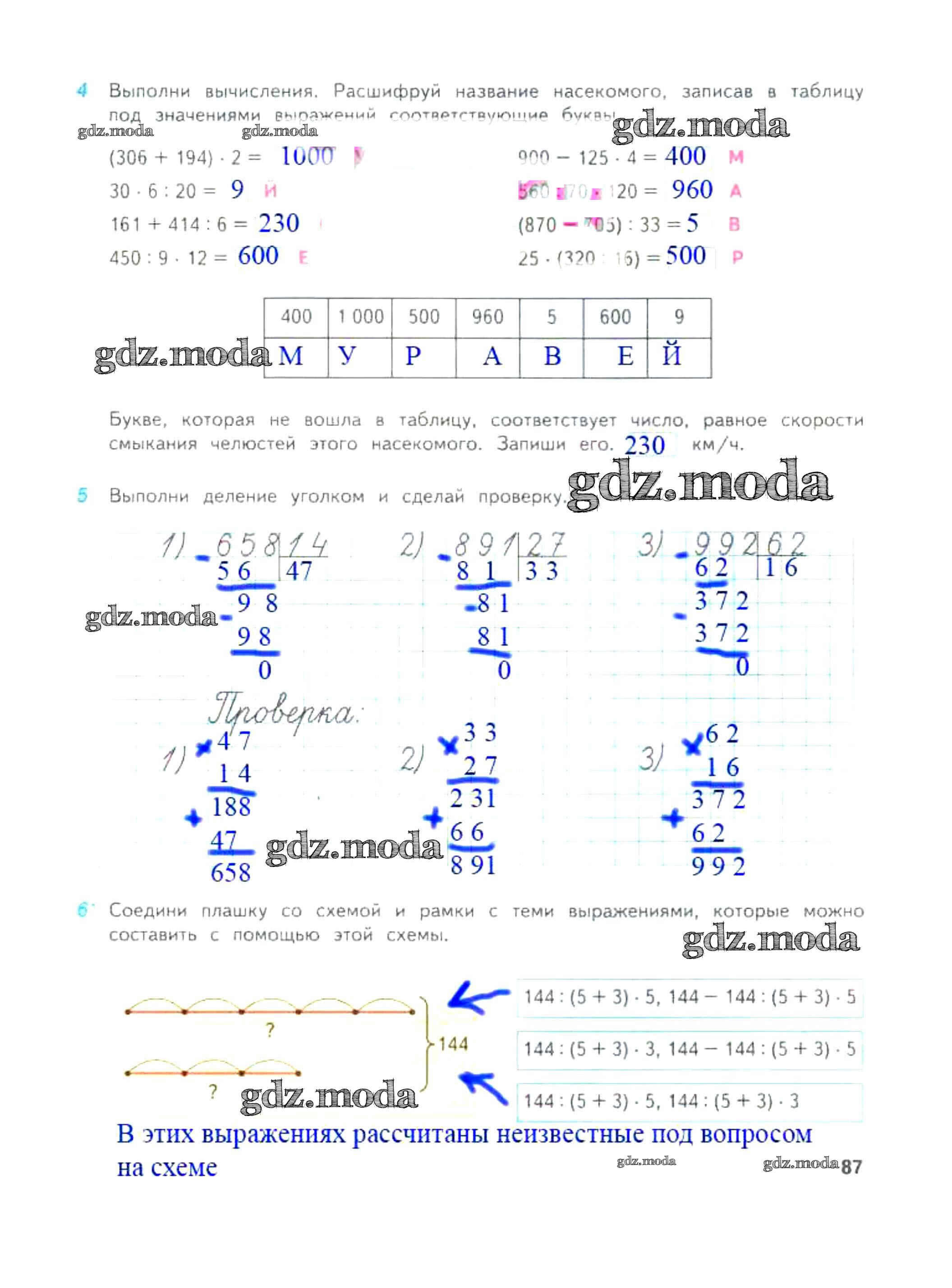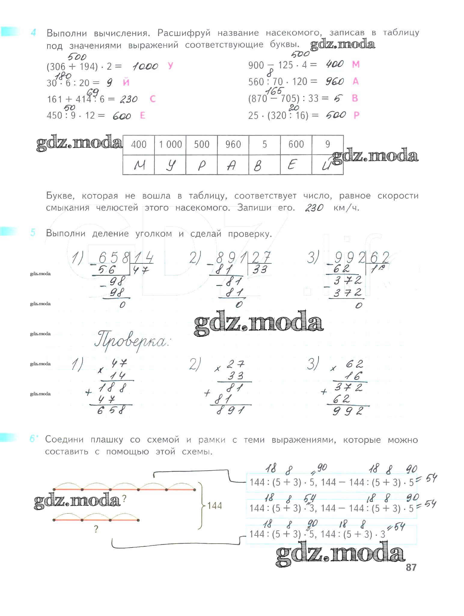 ОТВЕТ на задание № 87 Рабочая тетрадь по Математике 4 класс Дорофеев Перспектива