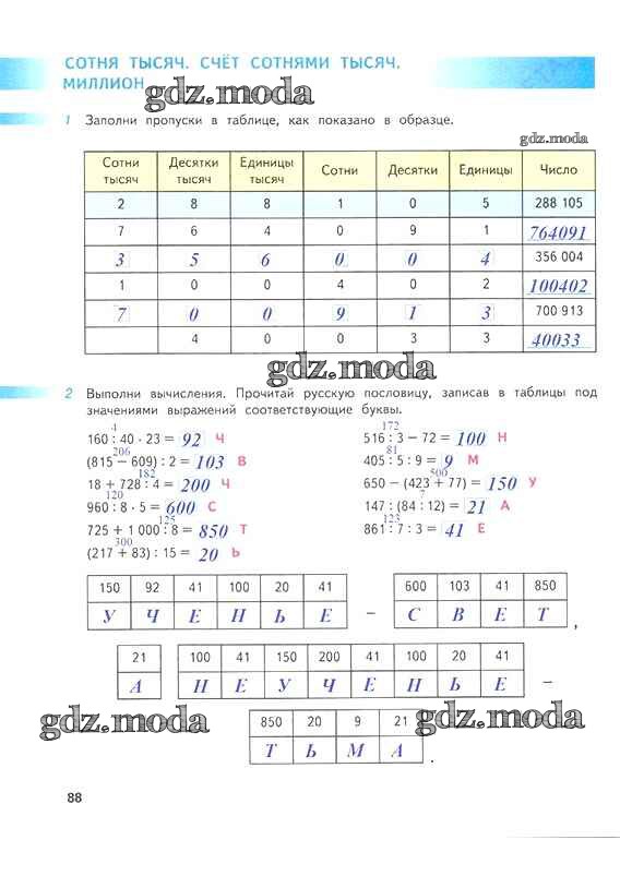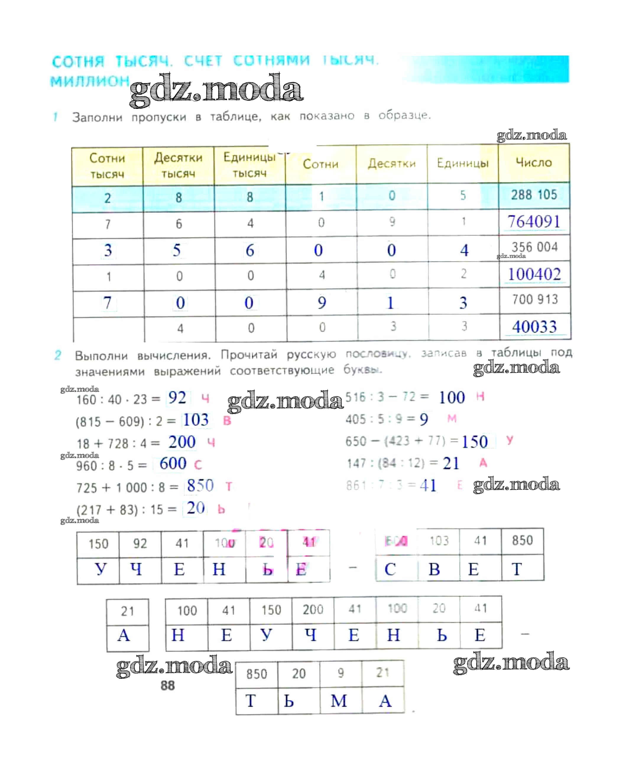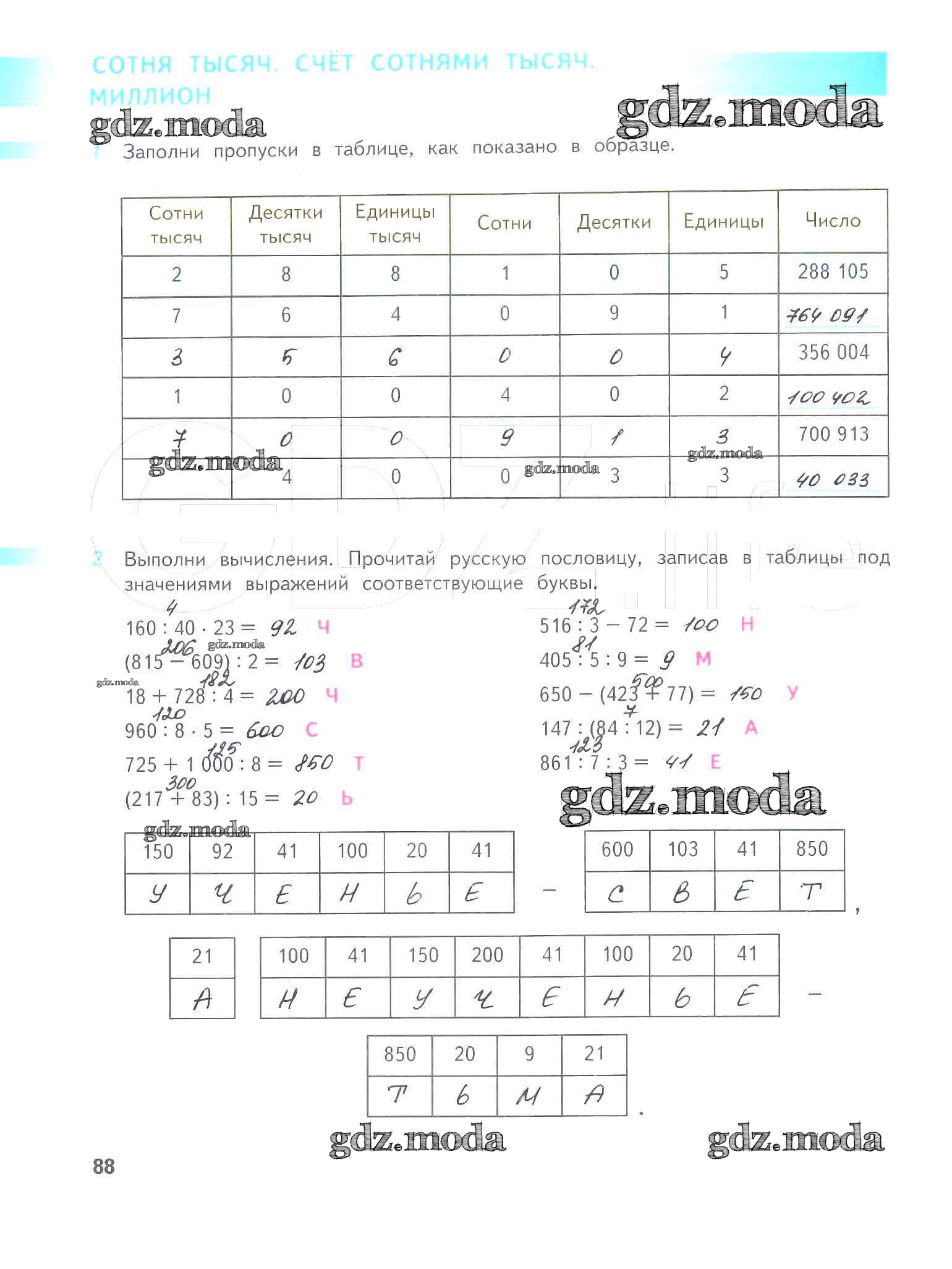 ОТВЕТ на задание № 88 Рабочая тетрадь по Математике 4 класс Дорофеев Перспектива