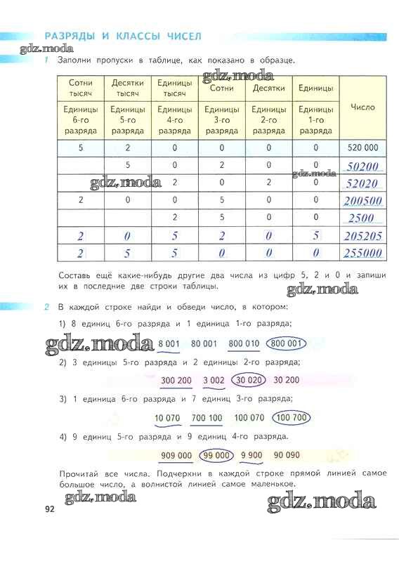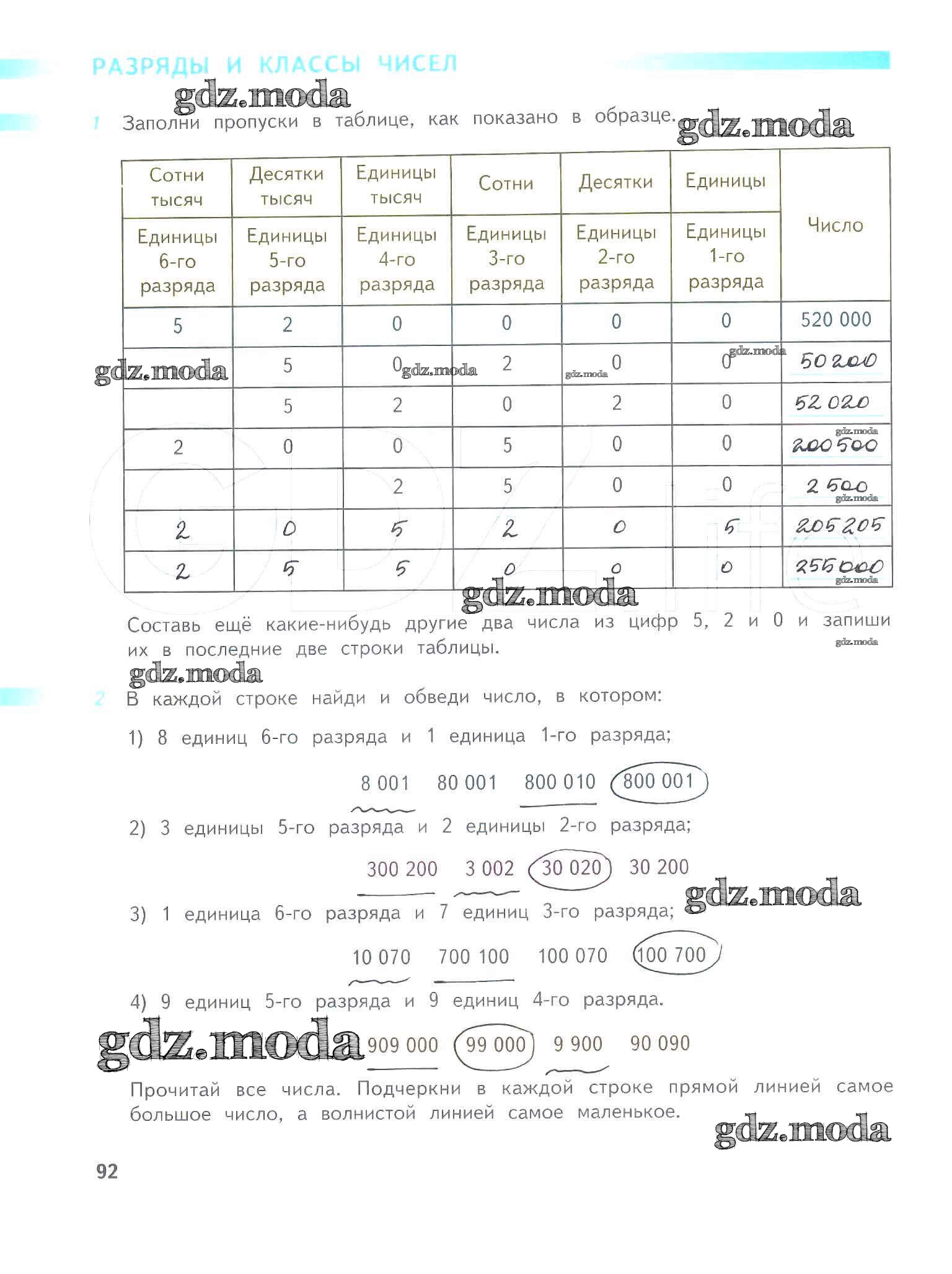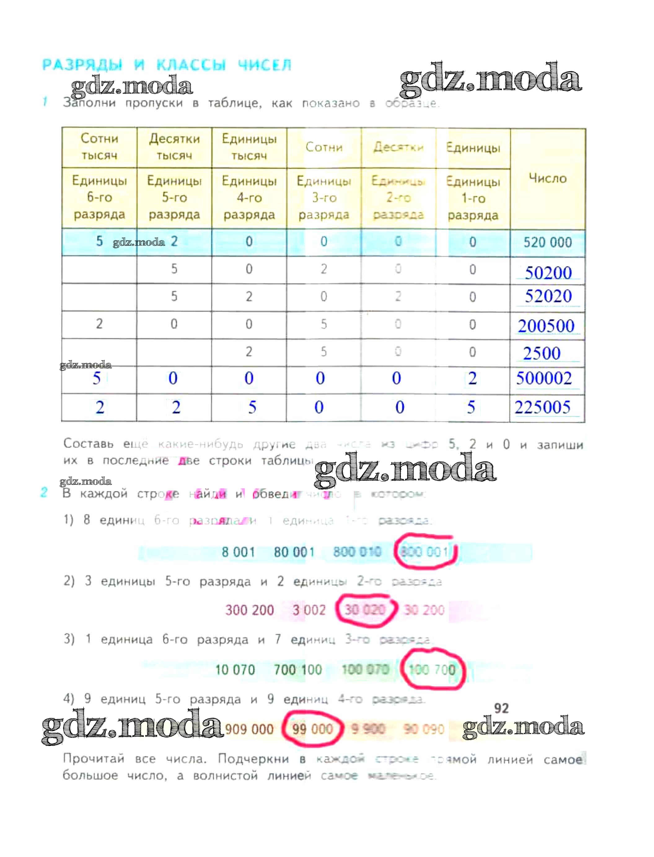 ОТВЕТ на задание № 92 Рабочая тетрадь по Математике 4 класс Дорофеев Перспектива