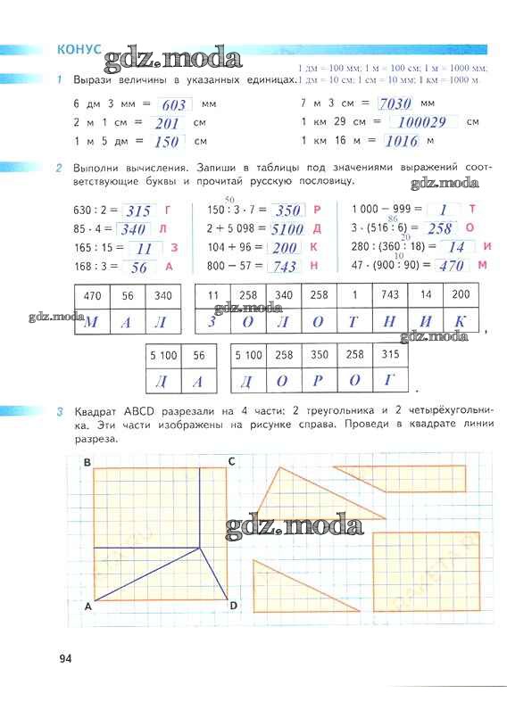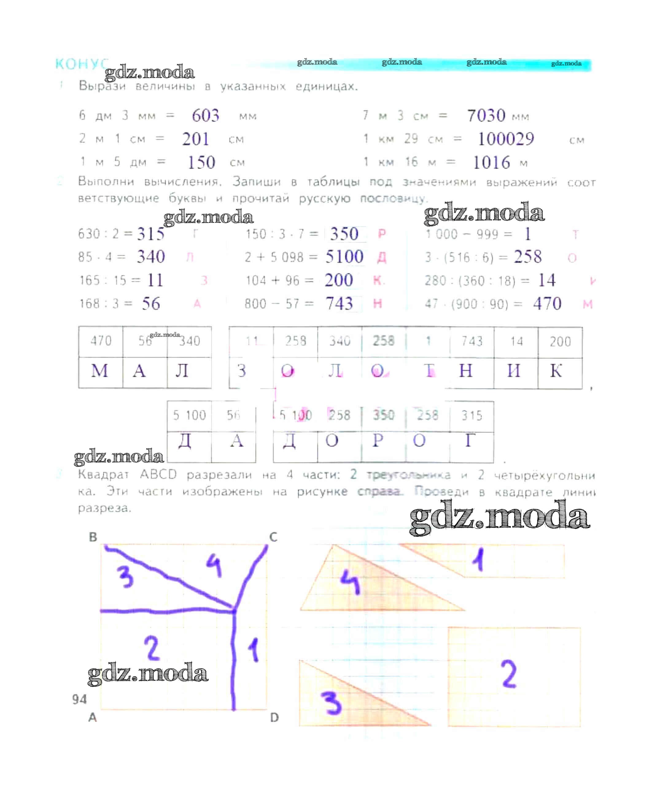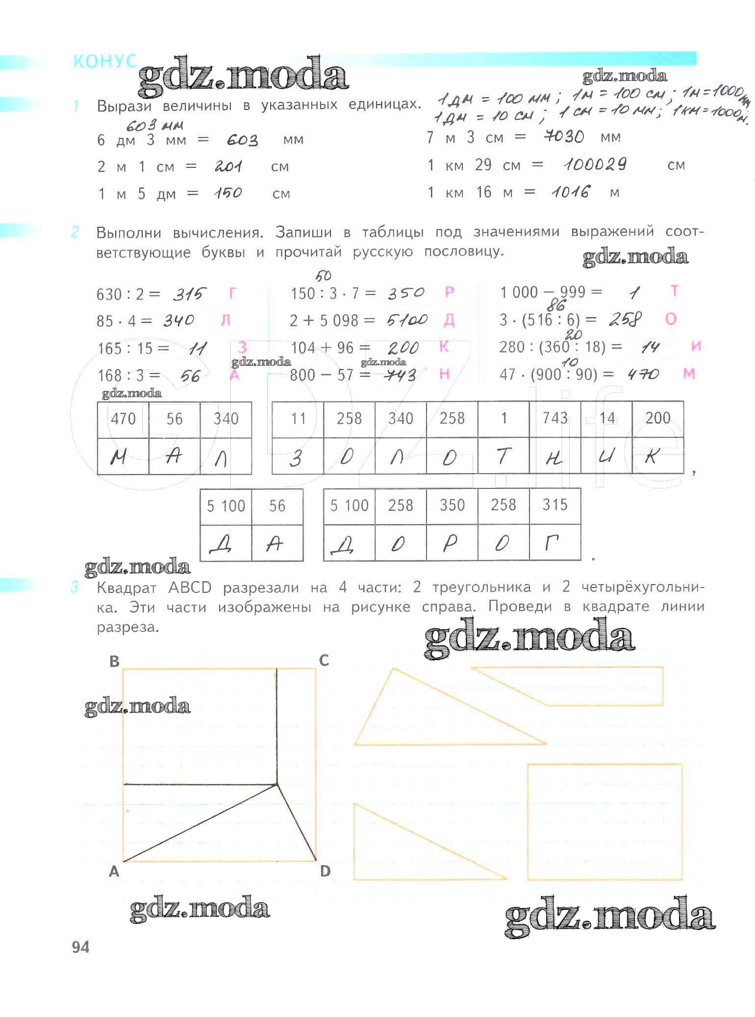 ОТВЕТ на задание № 94 Рабочая тетрадь по Математике 4 класс Дорофеев Перспектива