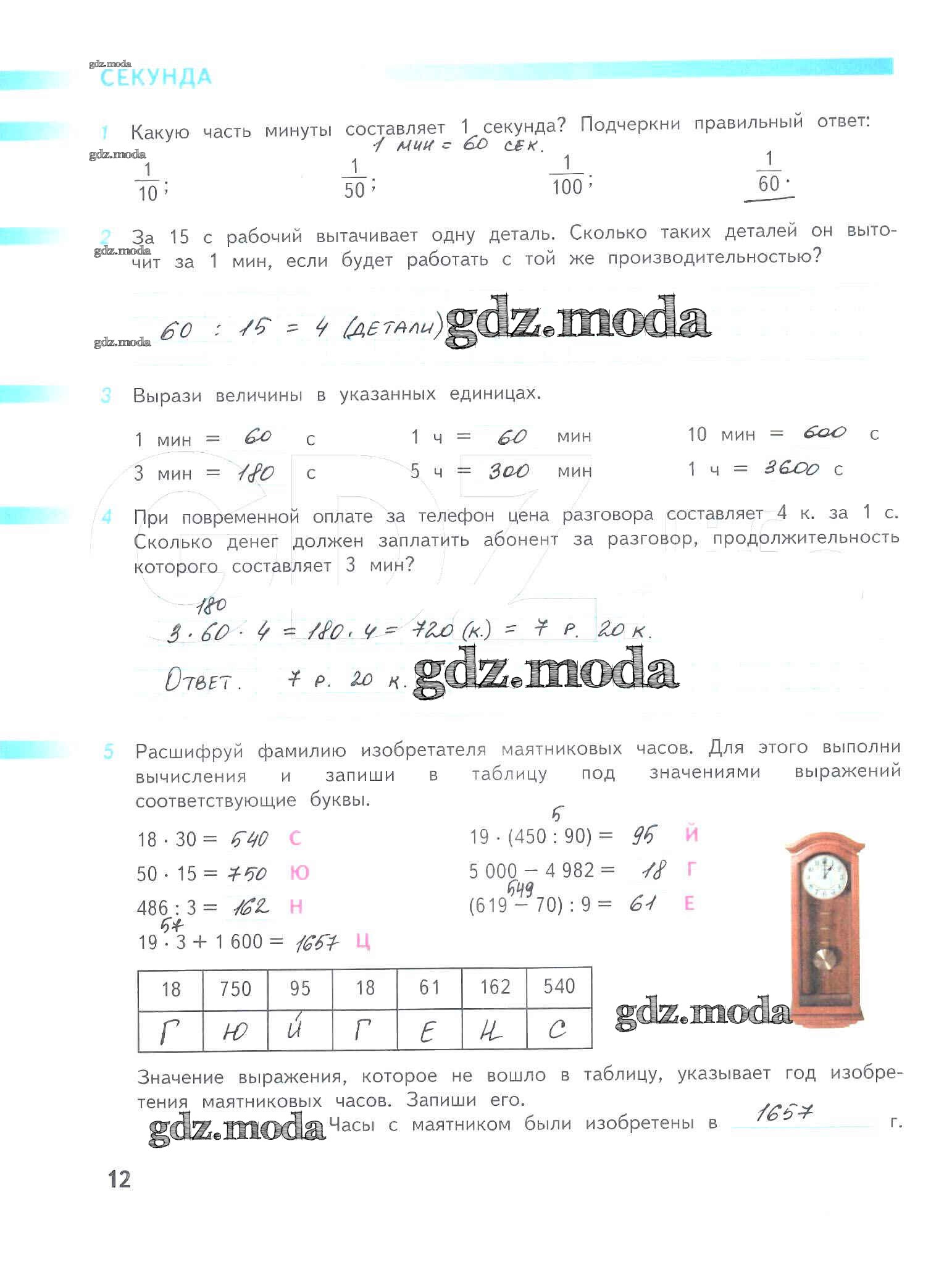 ОТВЕТ на задание № 12 Рабочая тетрадь по Математике 4 класс Дорофеев Перспектива