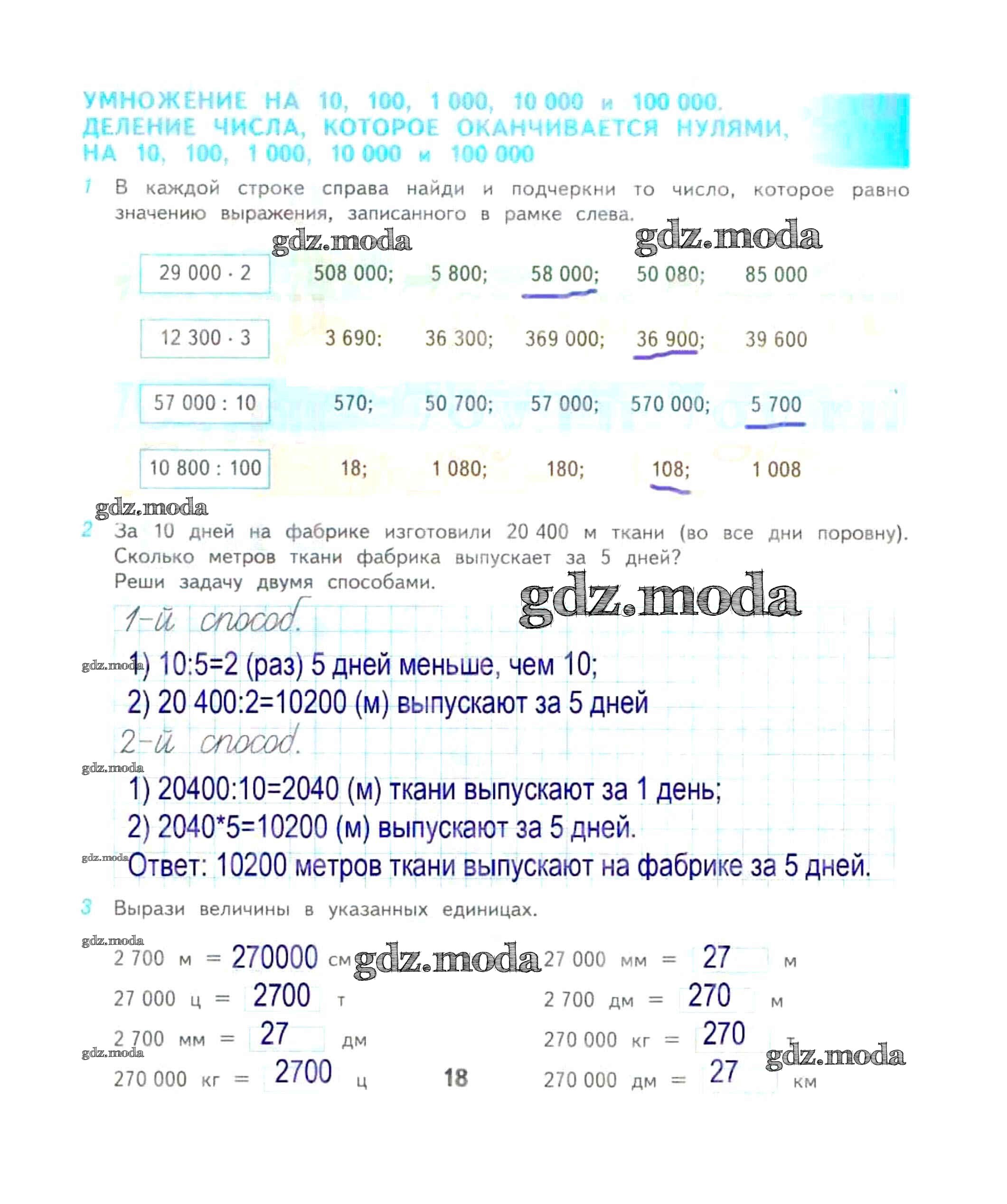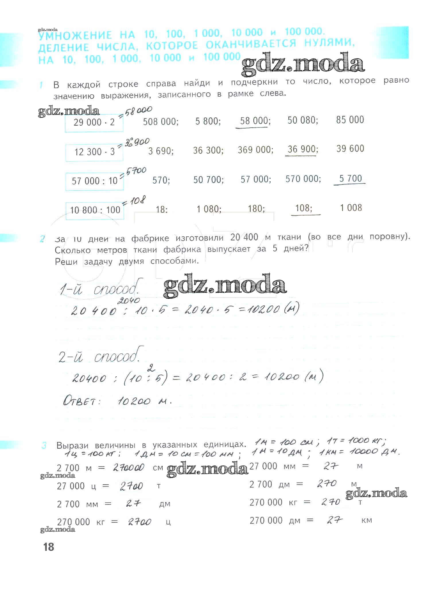 ОТВЕТ на задание № 18 Рабочая тетрадь по Математике 4 класс Дорофеев Перспектива