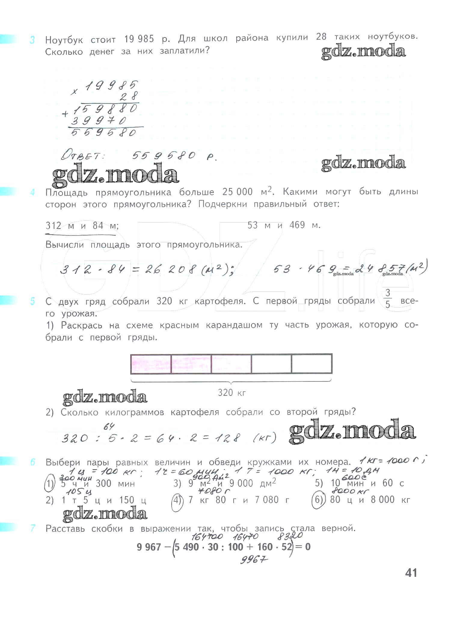 ОТВЕТ на задание № 41 Рабочая тетрадь по Математике 4 класс Дорофеев Перспектива