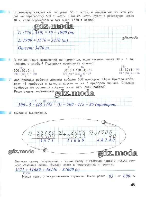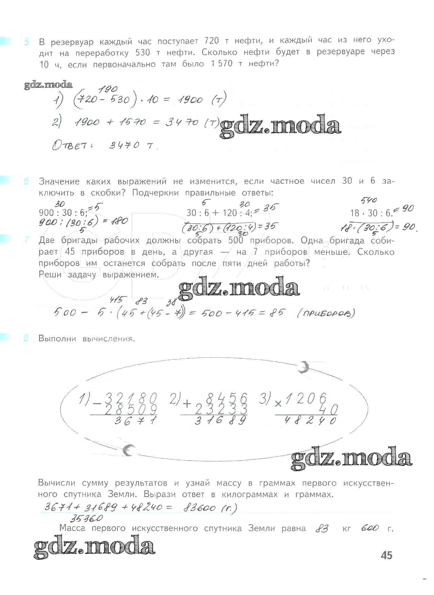 ОТВЕТ на задание № 45 Рабочая тетрадь по Математике 4 класс Дорофеев Перспектива