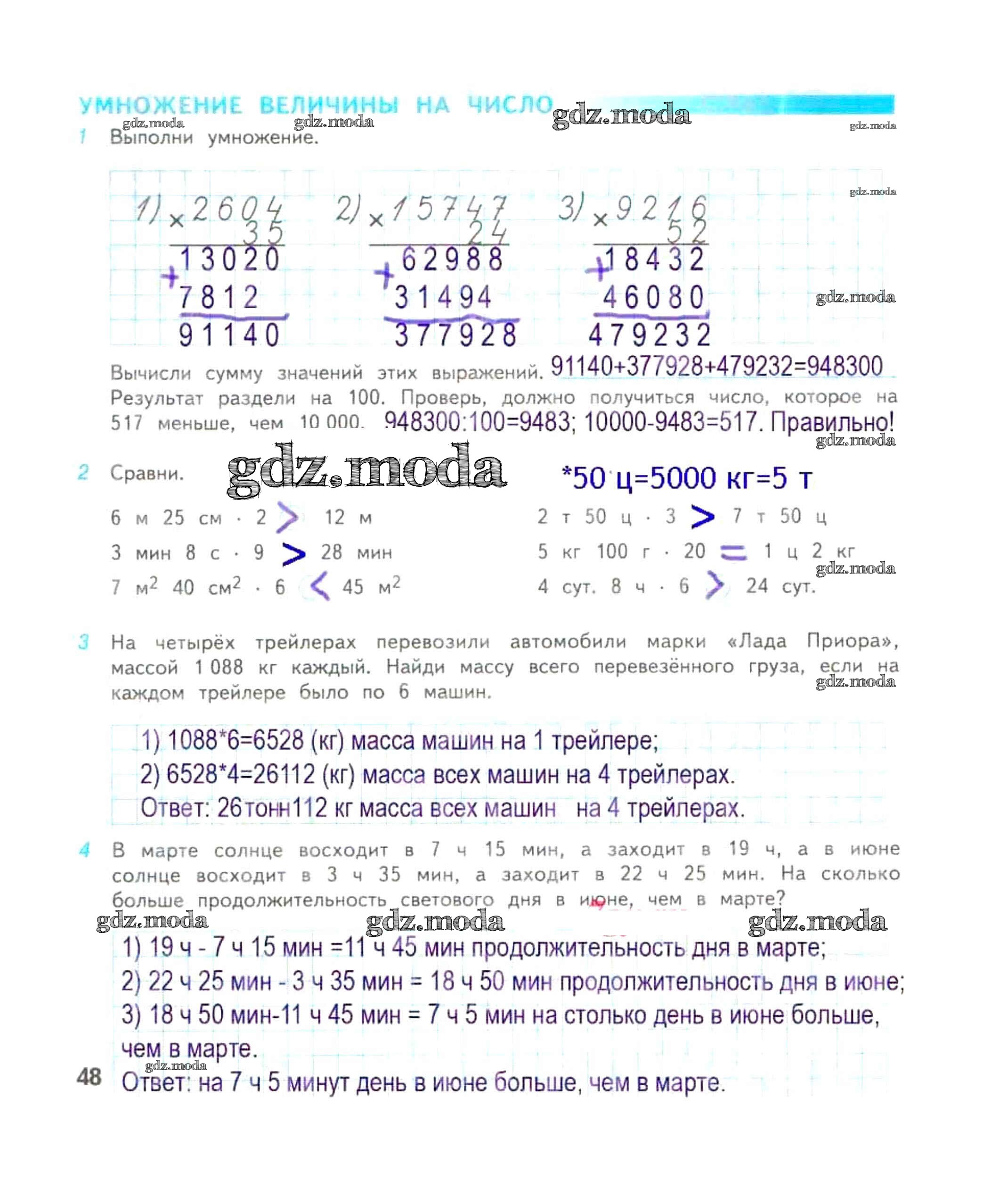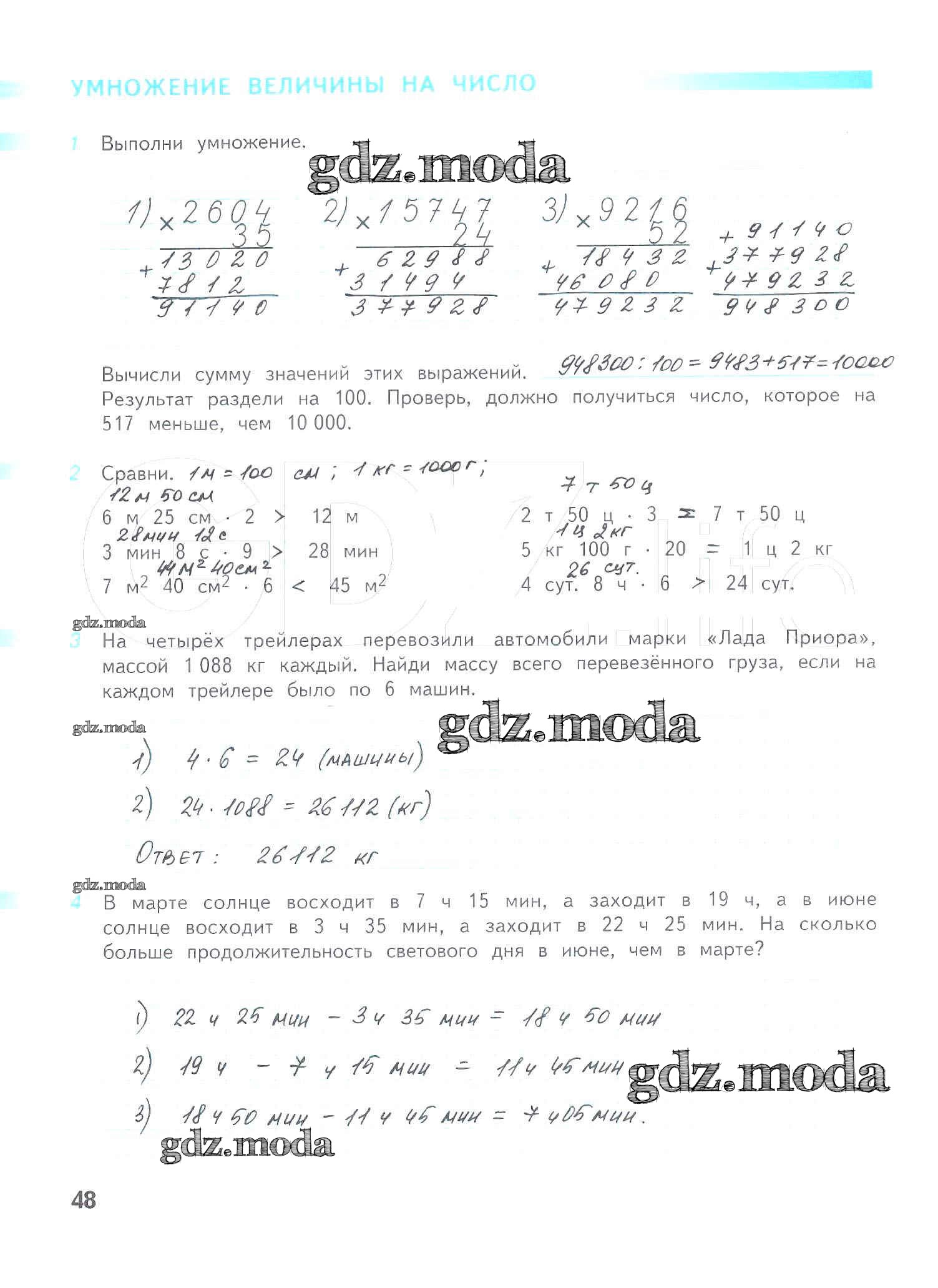 ОТВЕТ на задание № 48 Рабочая тетрадь по Математике 4 класс Дорофеев Перспектива