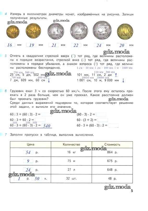 ОТВЕТ на задание № 5 Рабочая тетрадь по Математике 4 класс Дорофеев Перспектива