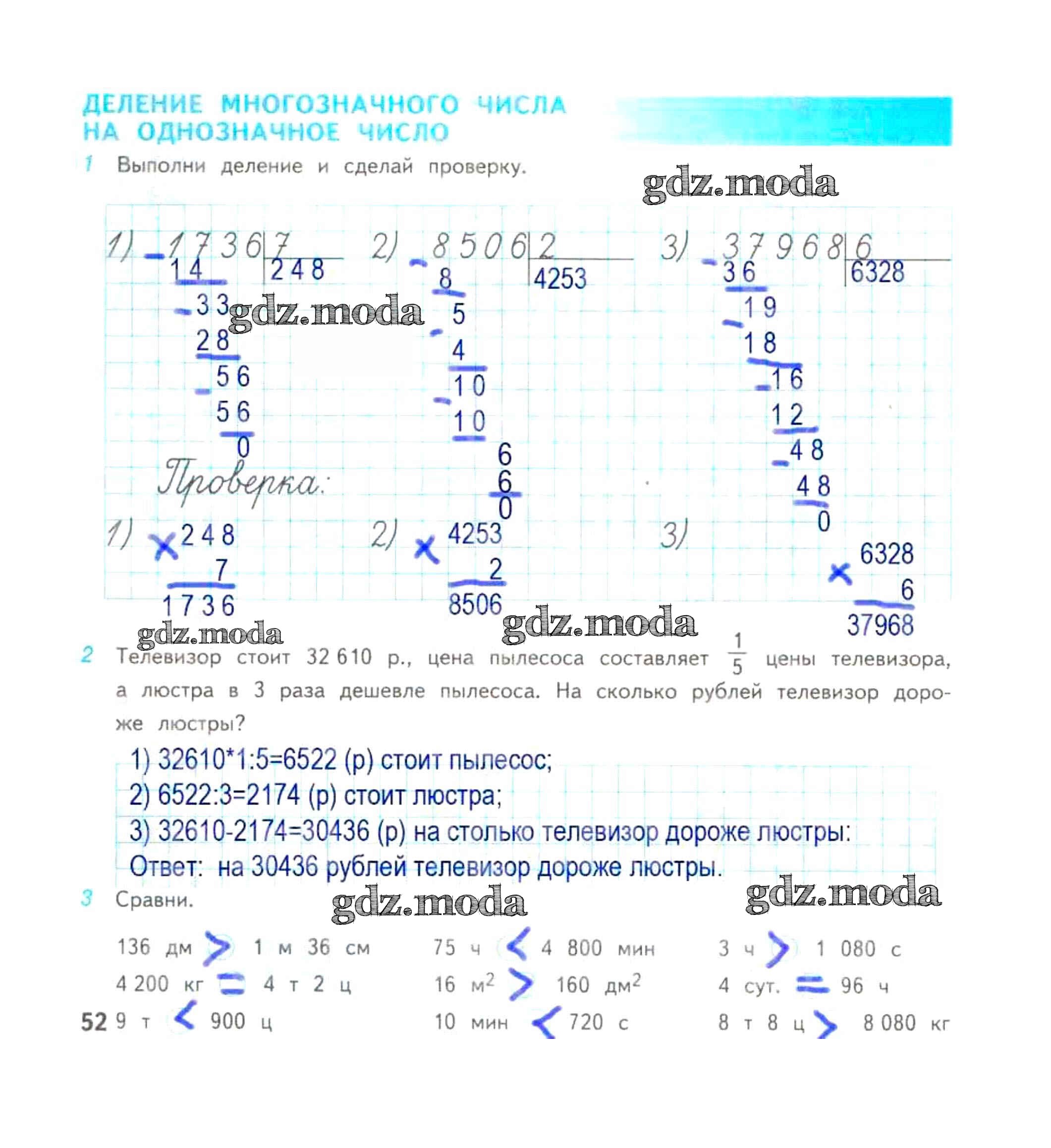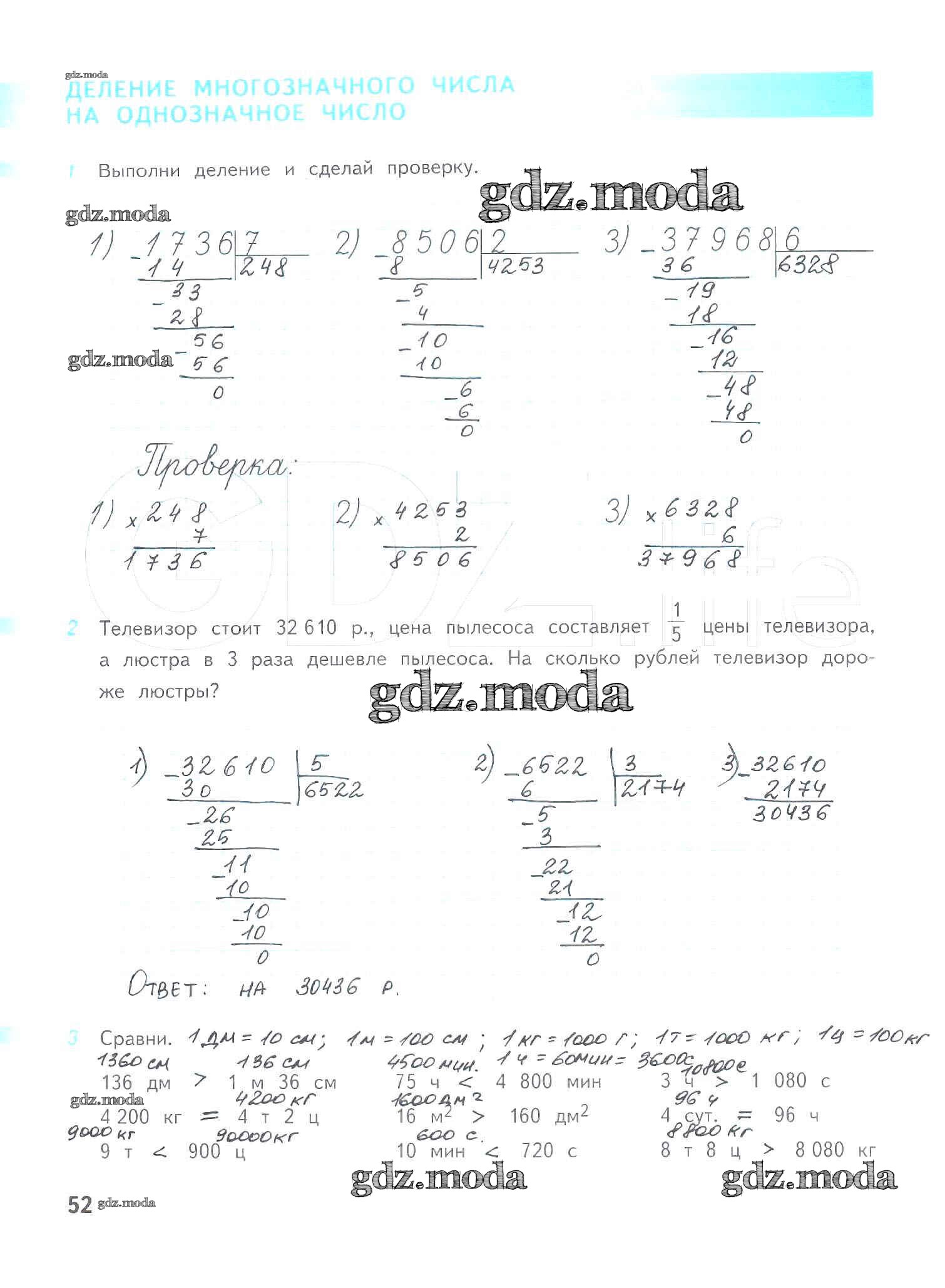ОТВЕТ на задание № 52 Рабочая тетрадь по Математике 4 класс Дорофеев Перспектива