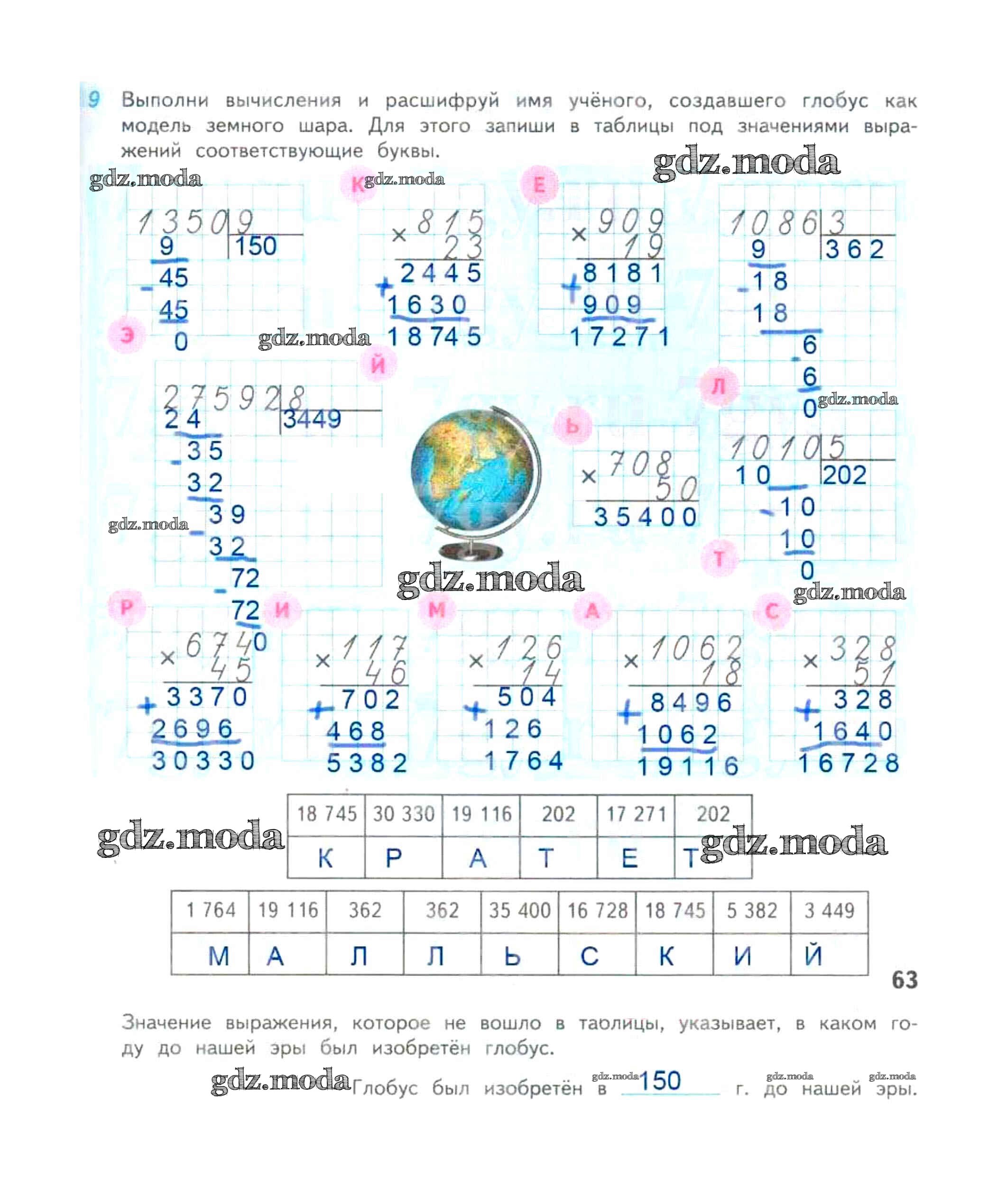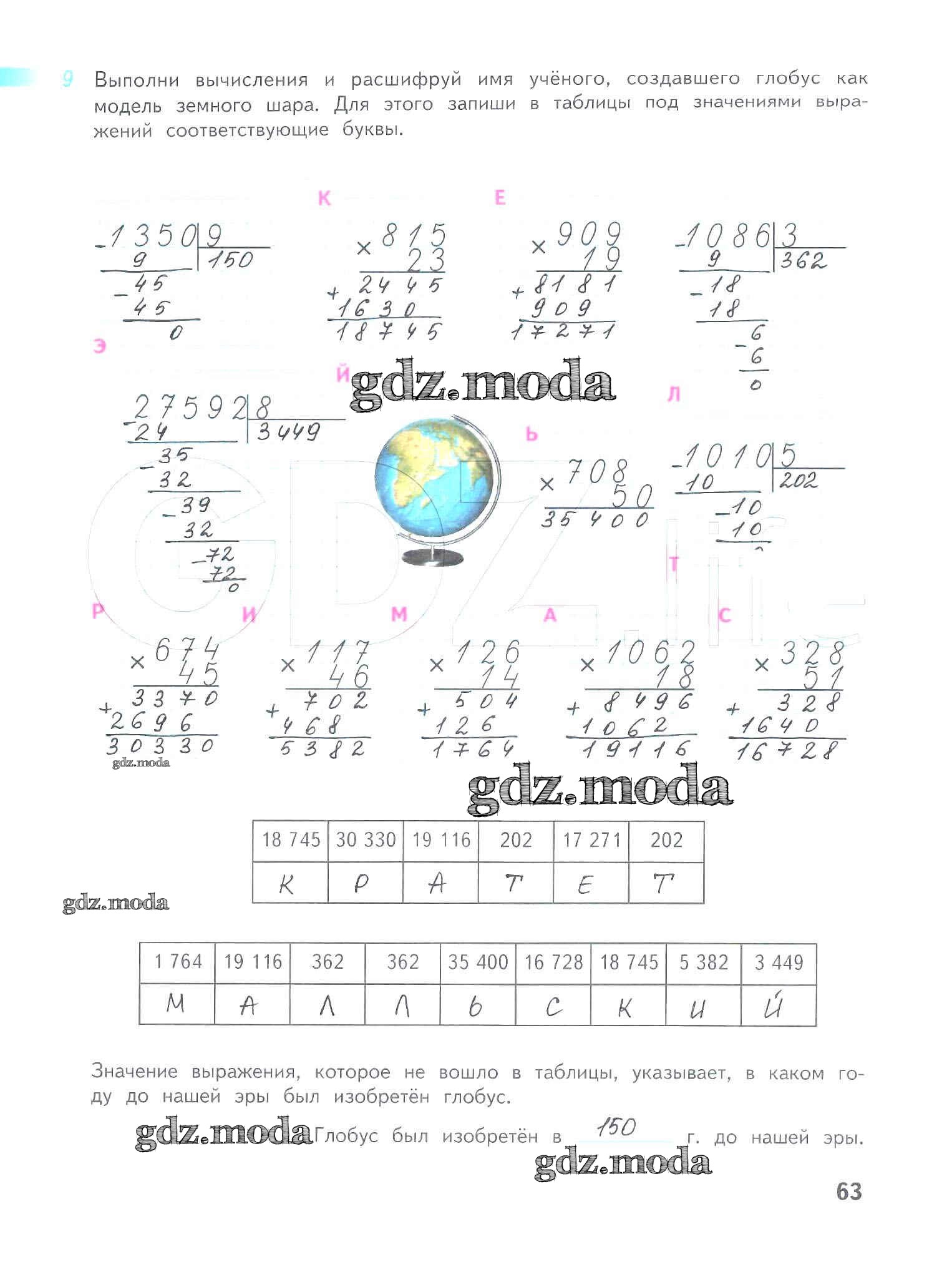 ОТВЕТ на задание № 63 Рабочая тетрадь по Математике 4 класс Дорофеев Перспектива