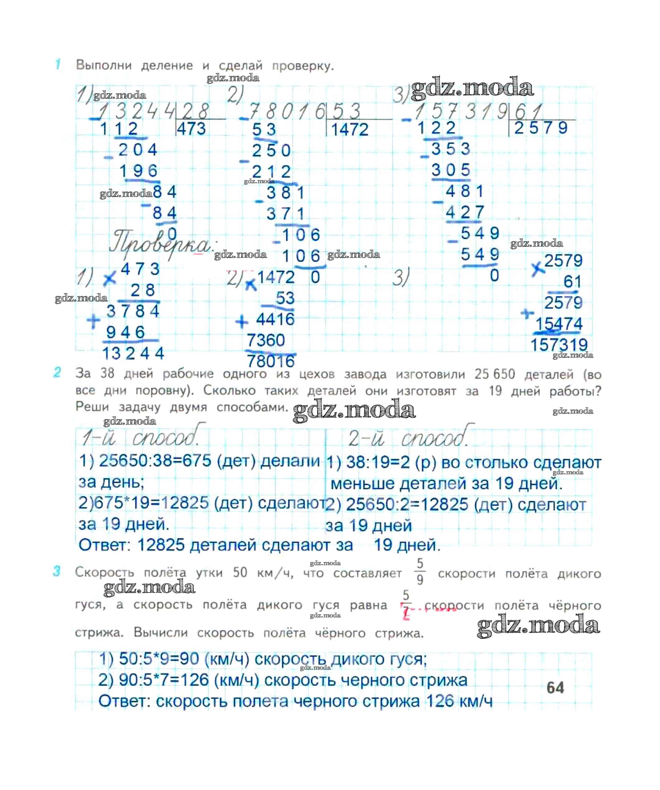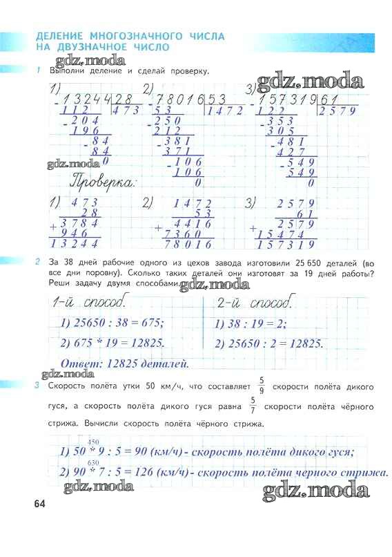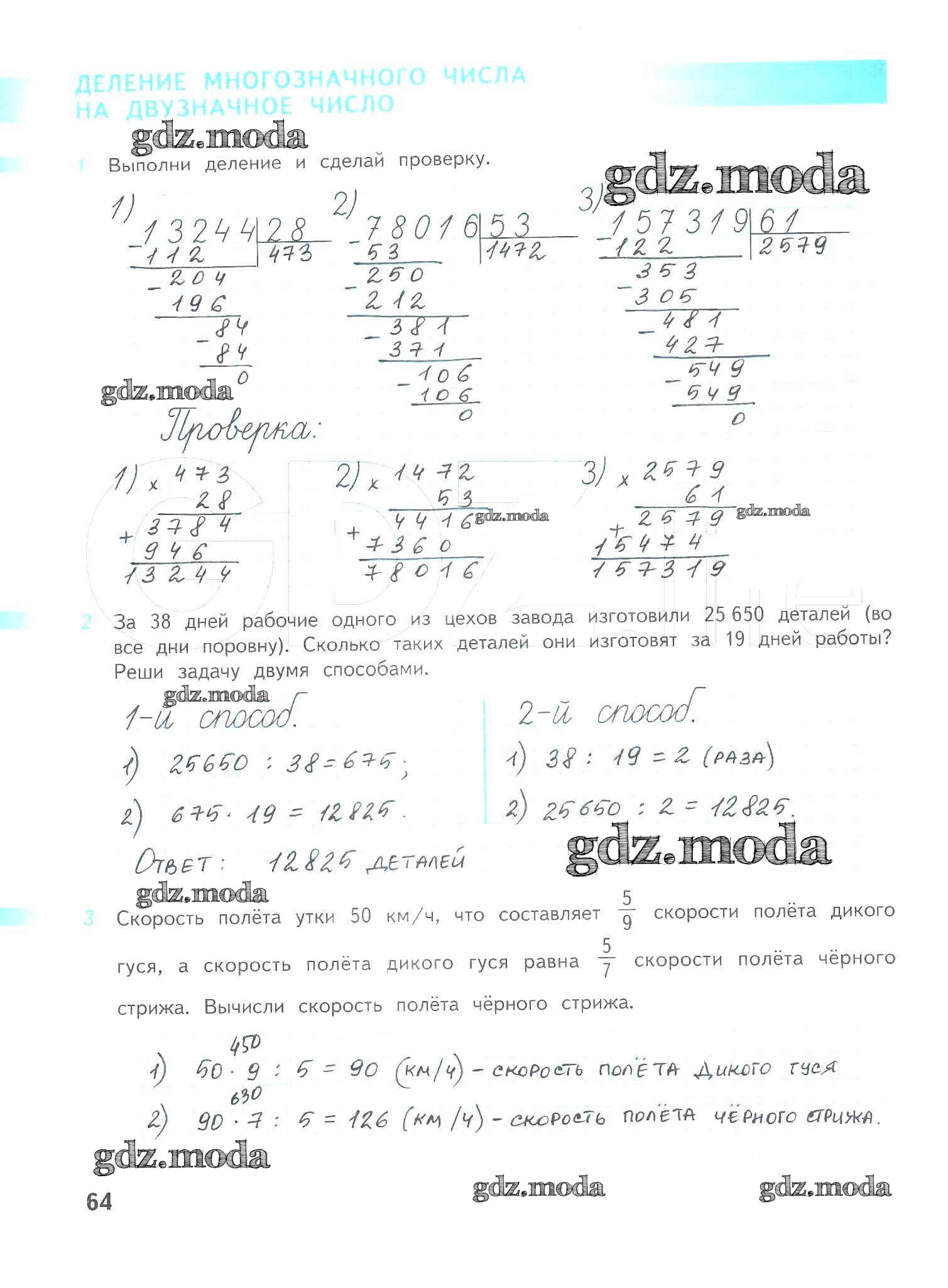 ОТВЕТ на задание № 64 Рабочая тетрадь по Математике 4 класс Дорофеев Перспектива