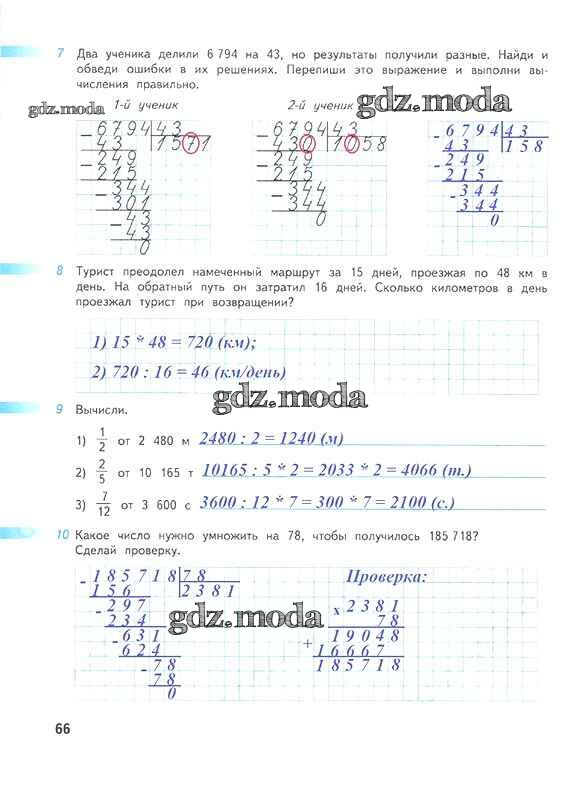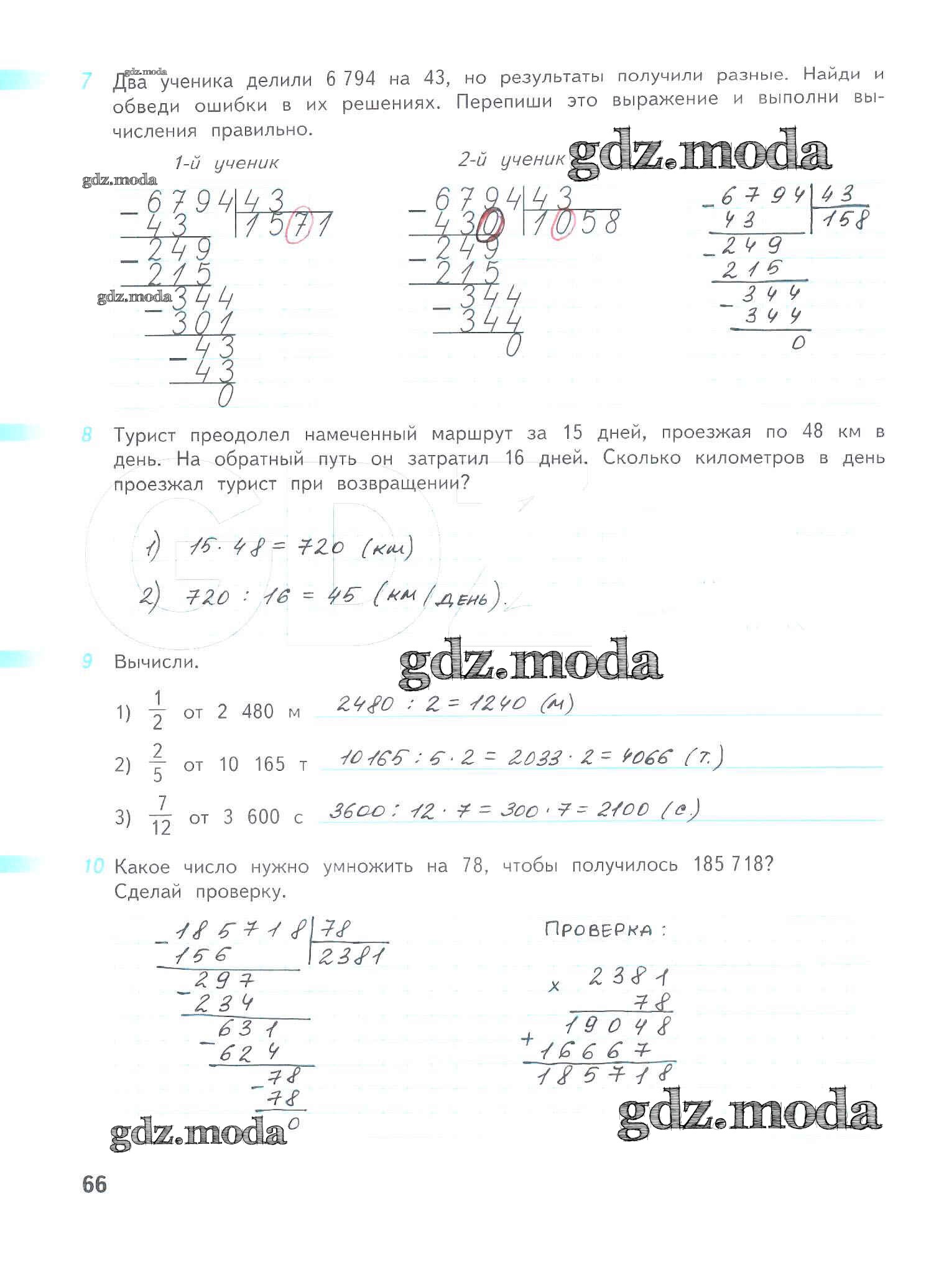 ОТВЕТ на задание № 66 Рабочая тетрадь по Математике 4 класс Дорофеев Перспектива