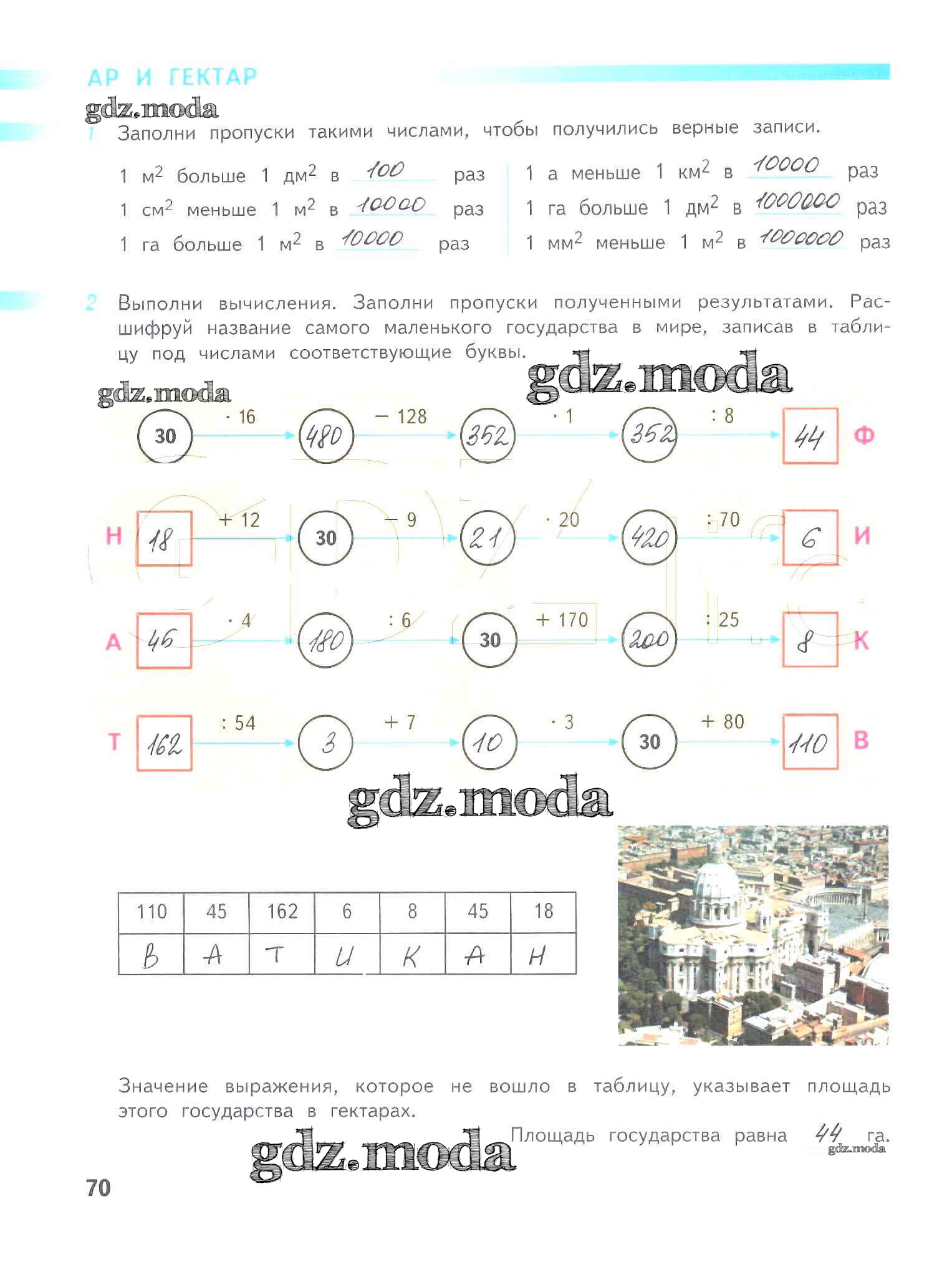 ОТВЕТ на задание № 70 Рабочая тетрадь по Математике 4 класс Дорофеев Перспектива