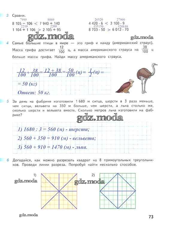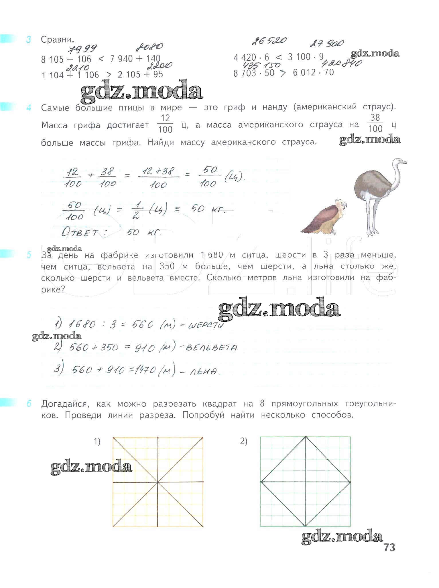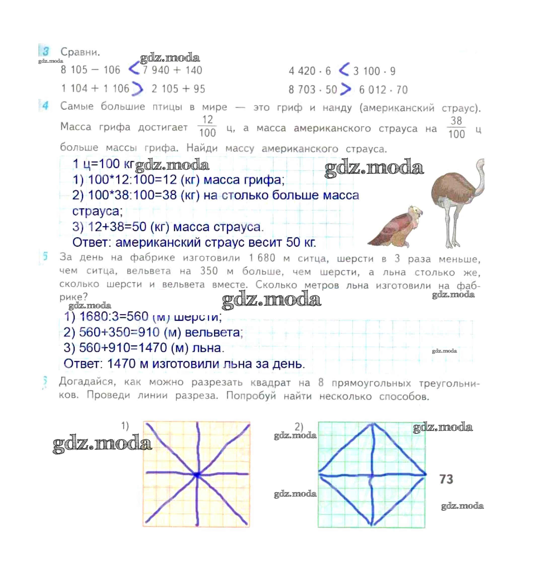 ОТВЕТ на задание № 73 Рабочая тетрадь по Математике 4 класс Дорофеев Перспектива
