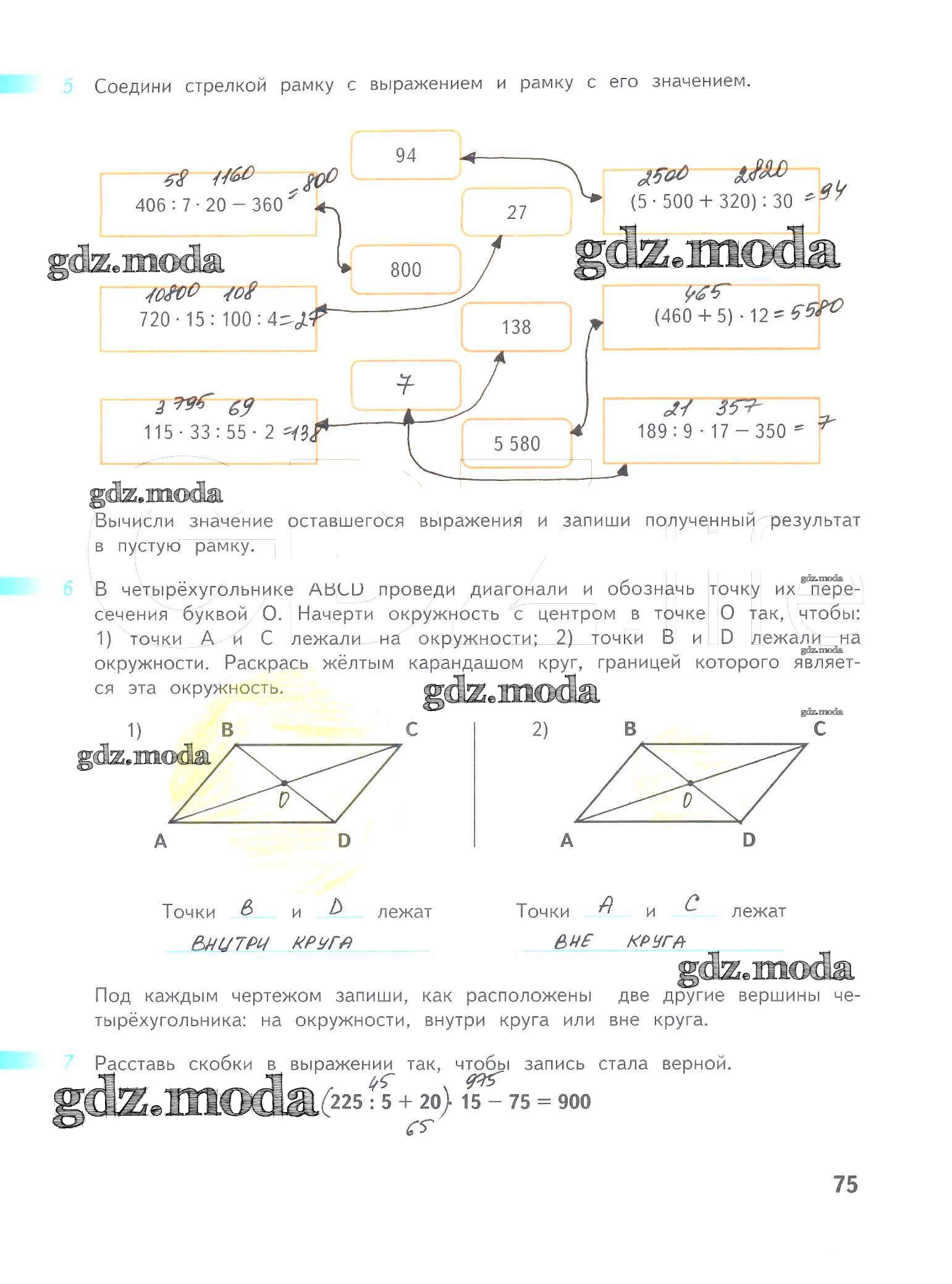 ОТВЕТ на задание № 75 Рабочая тетрадь по Математике 4 класс Дорофеев Перспектива