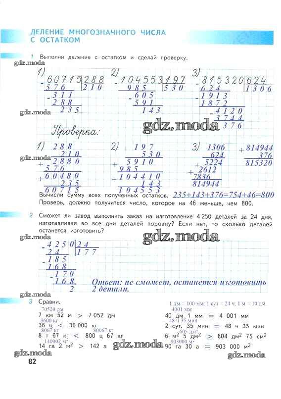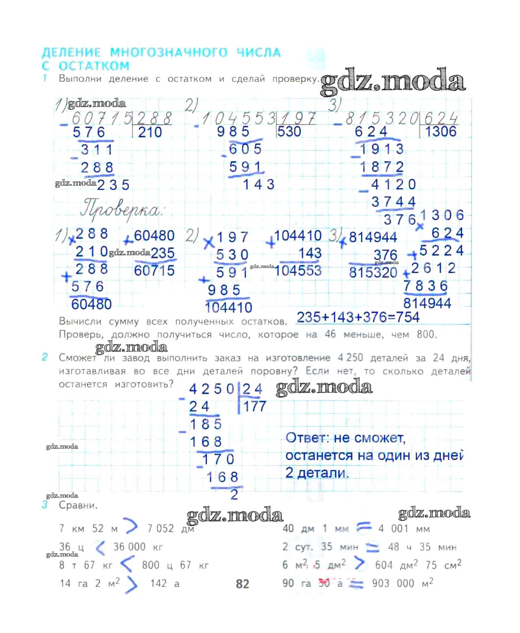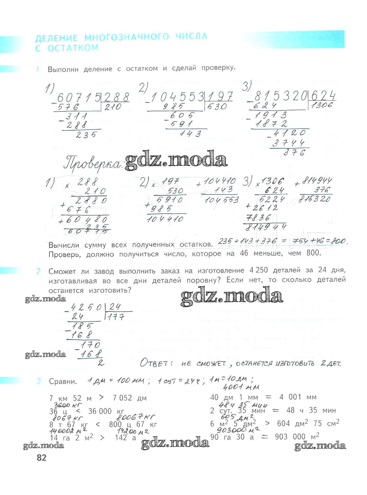 ОТВЕТ на задание № 82 Рабочая тетрадь по Математике 4 класс Дорофеев Перспектива