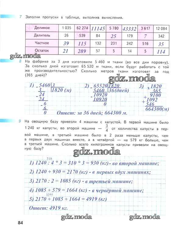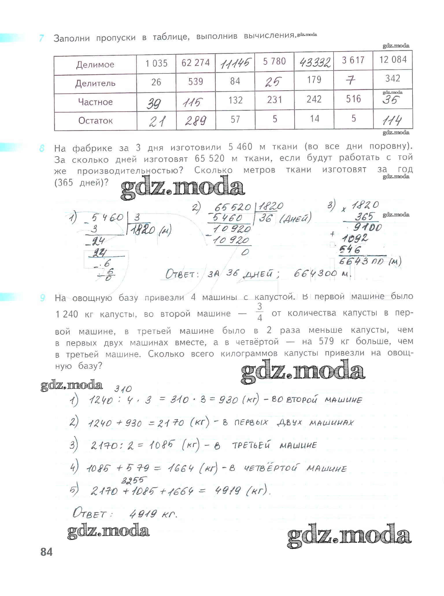 ОТВЕТ на задание № 84 Рабочая тетрадь по Математике 4 класс Дорофеев Перспектива