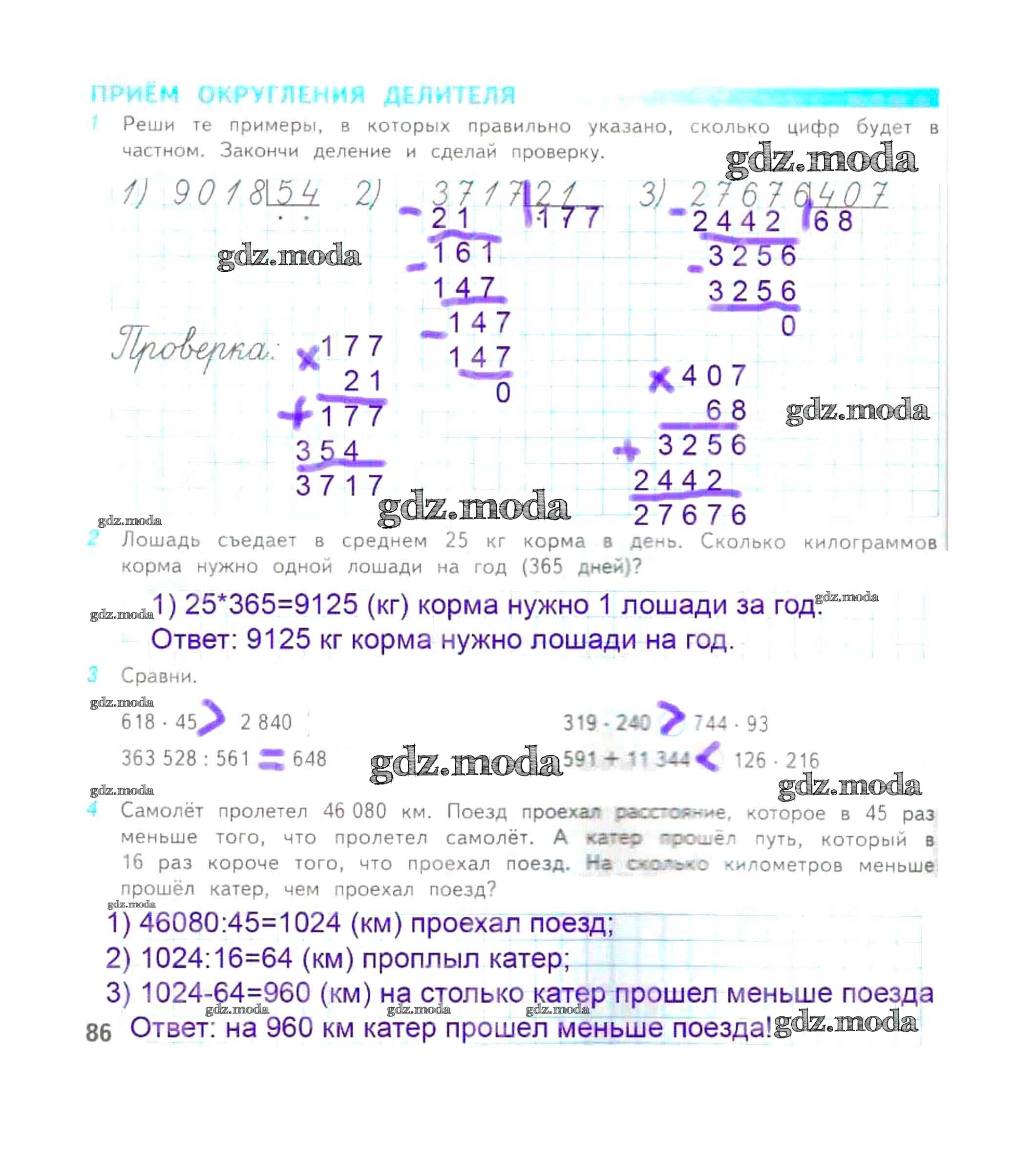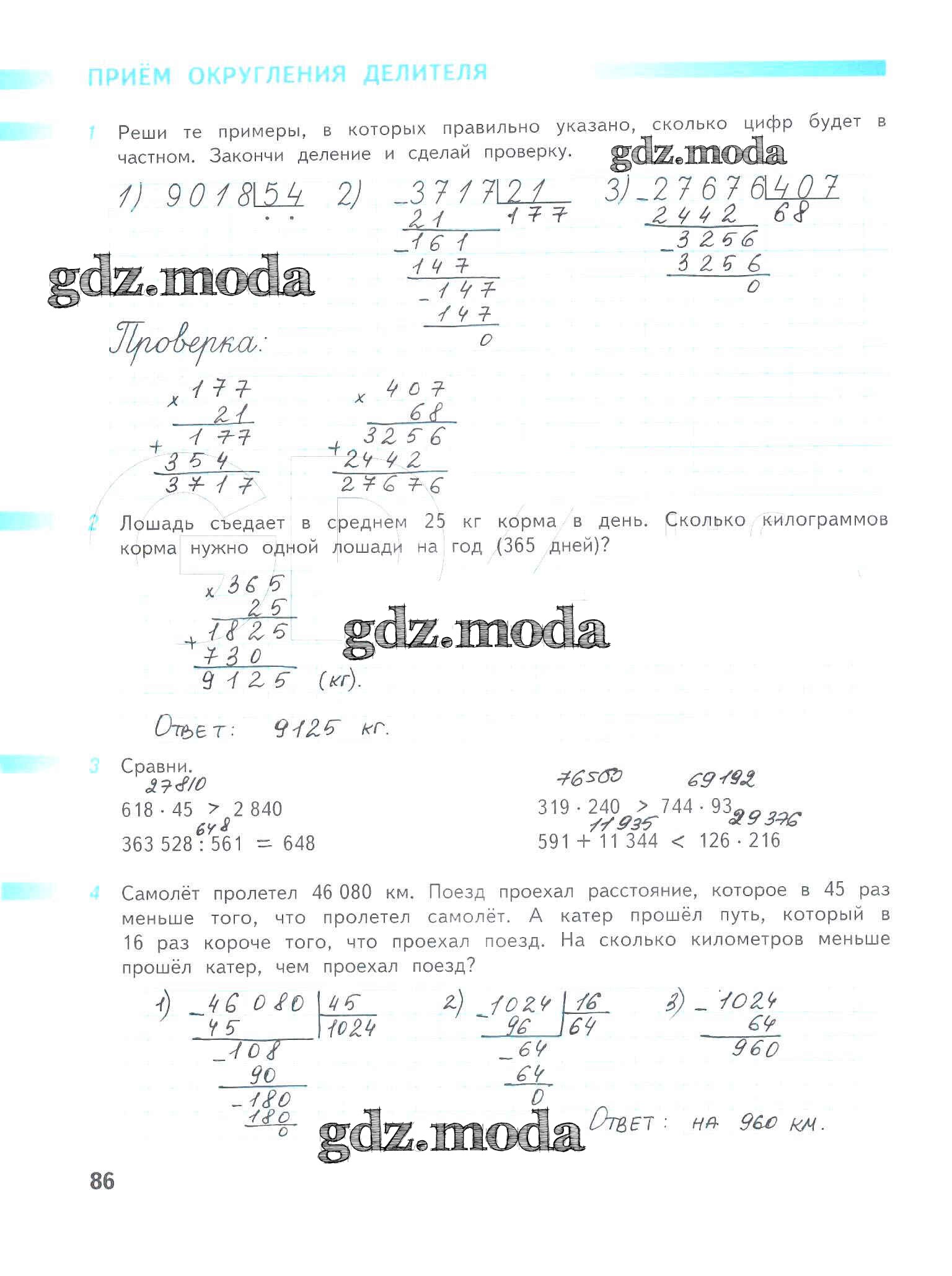 ОТВЕТ на задание № 86 Рабочая тетрадь по Математике 4 класс Дорофеев Перспектива