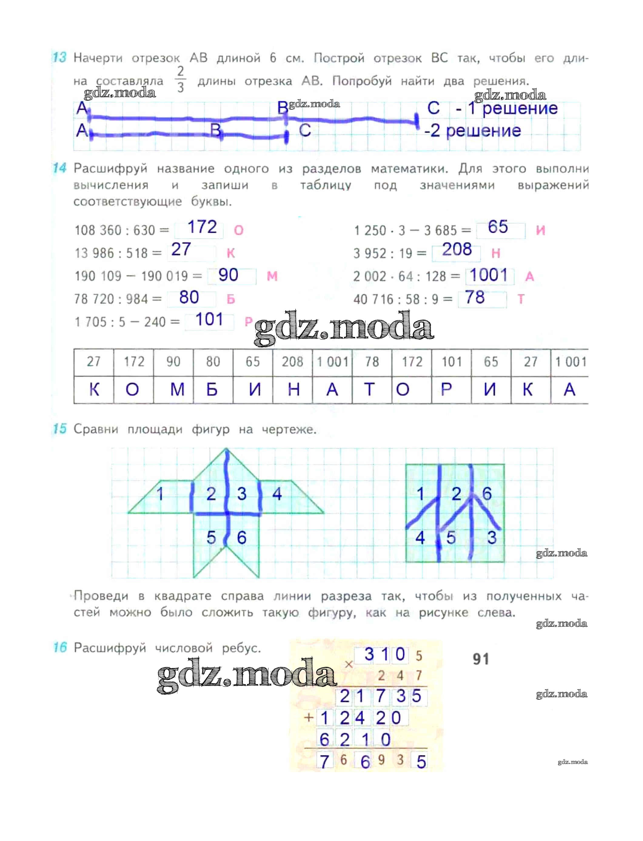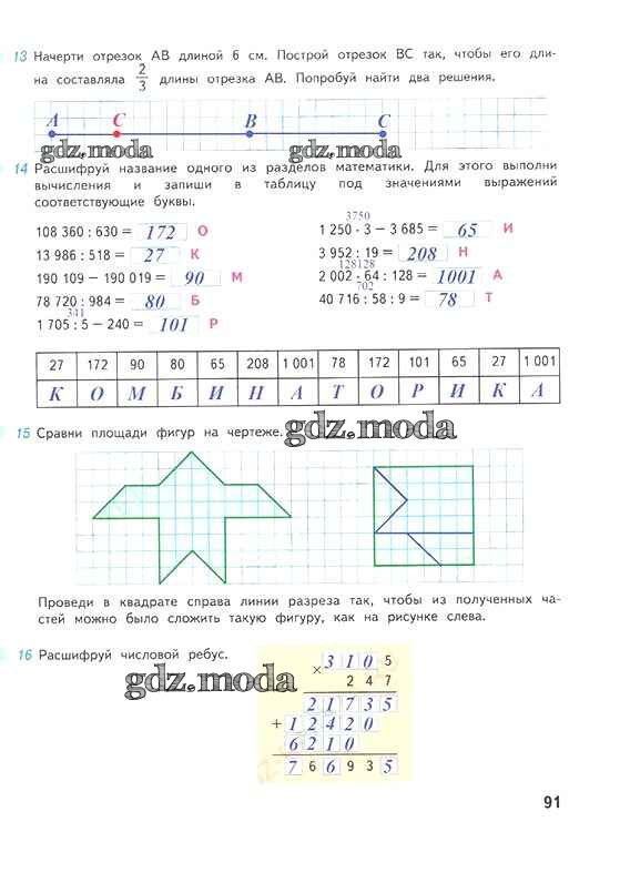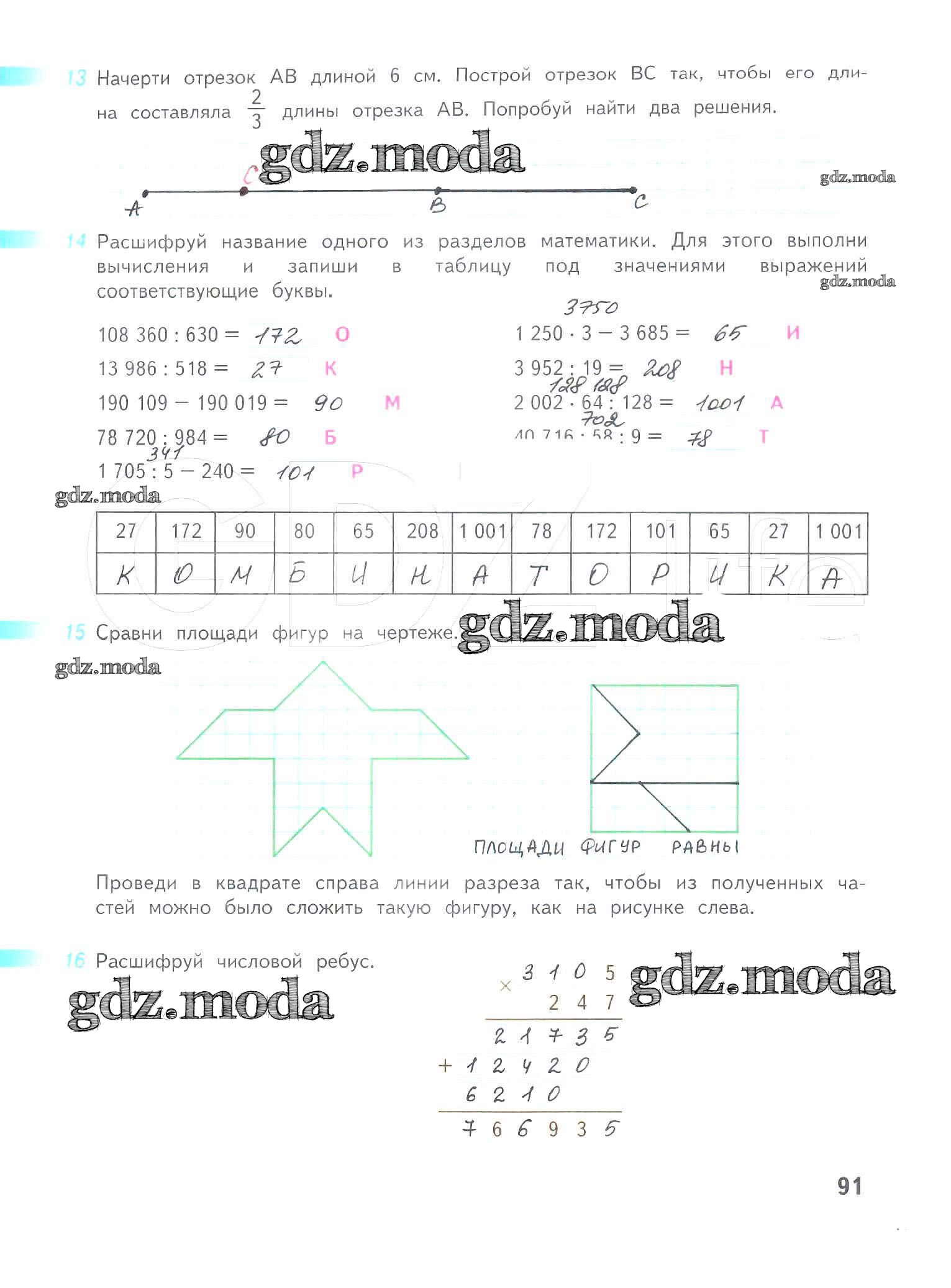 ОТВЕТ на задание № 91 Рабочая тетрадь по Математике 4 класс Дорофеев Перспектива