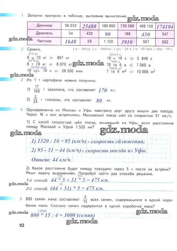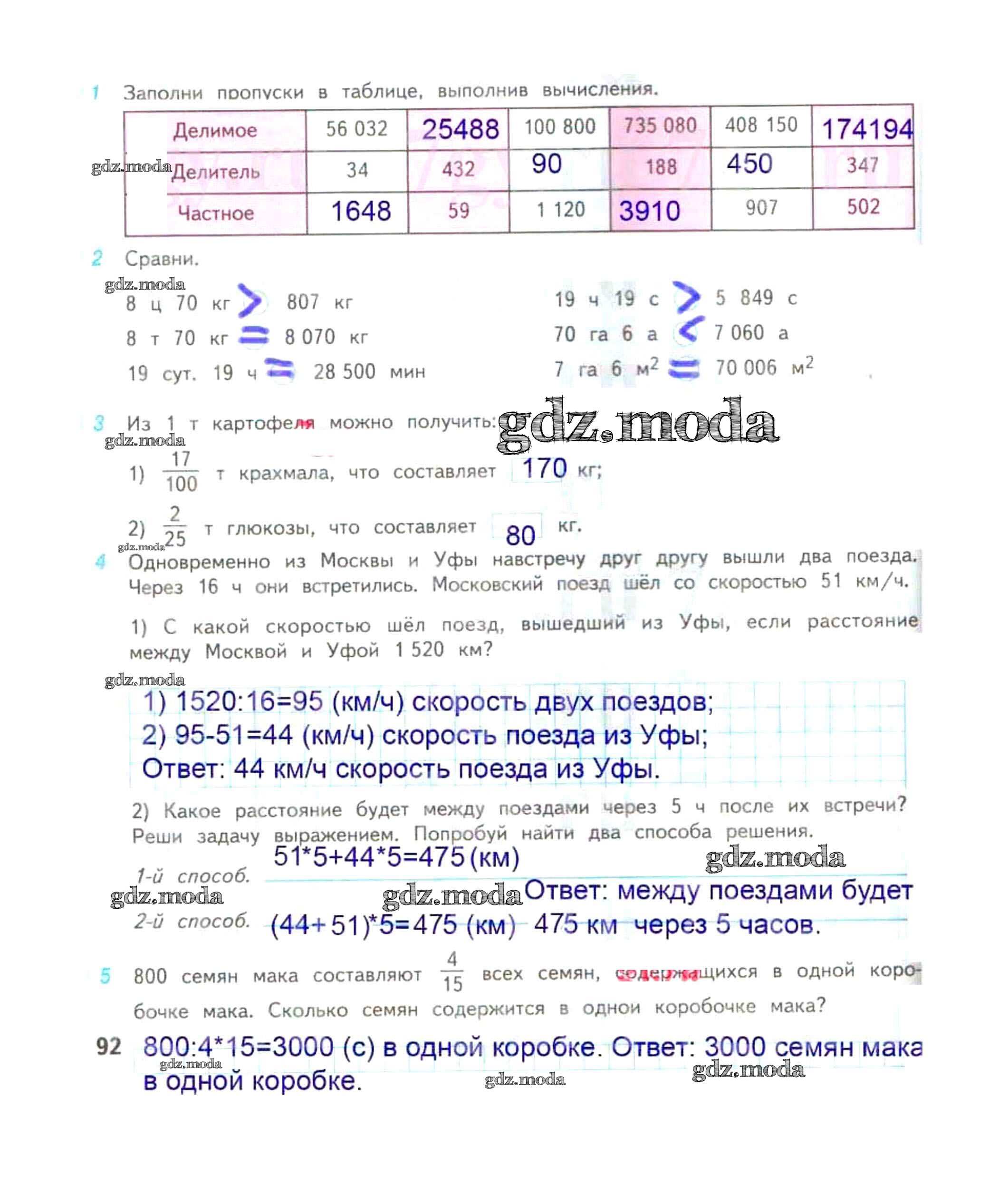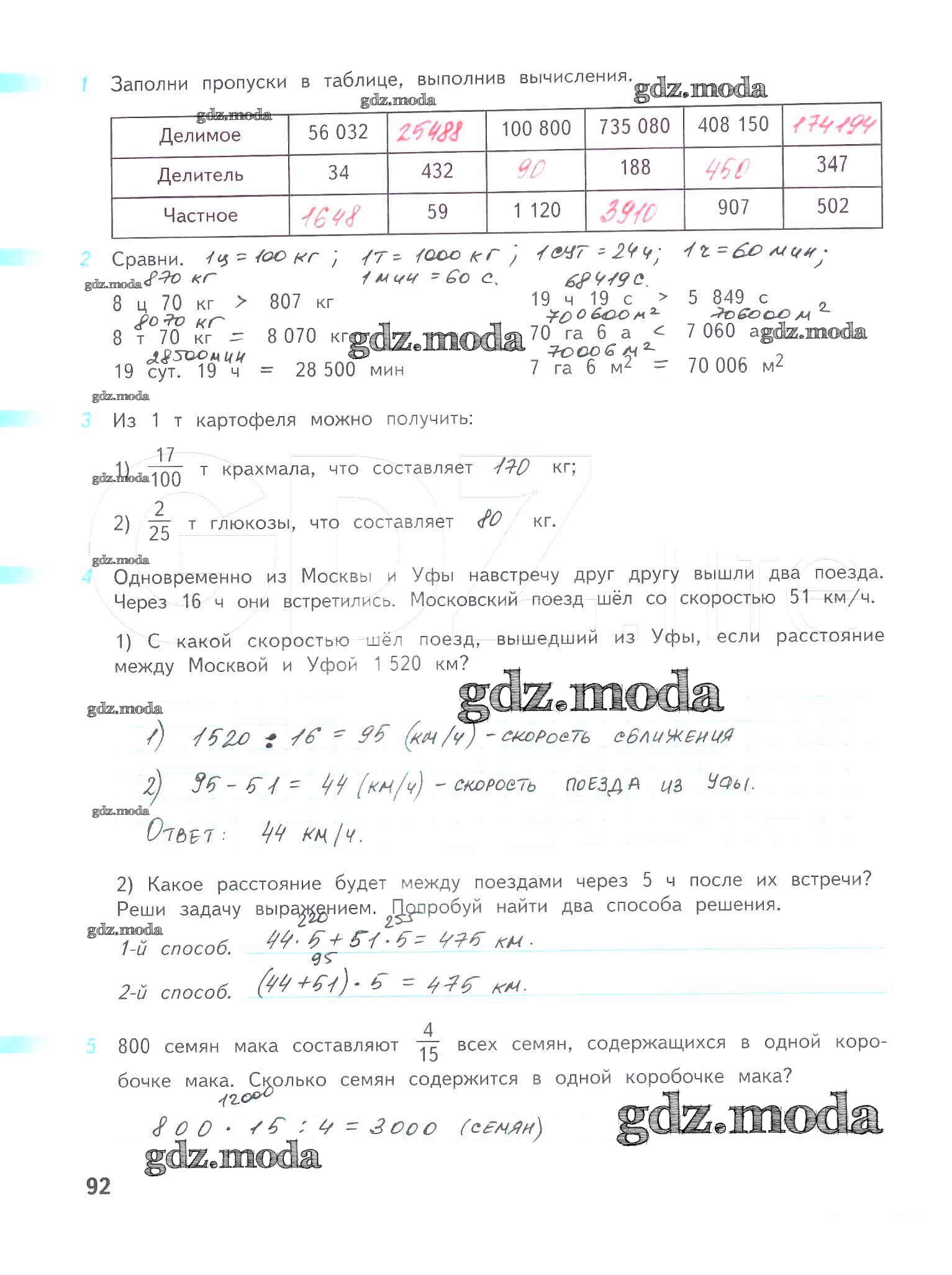 ОТВЕТ на задание № 92 Рабочая тетрадь по Математике 4 класс Дорофеев Перспектива