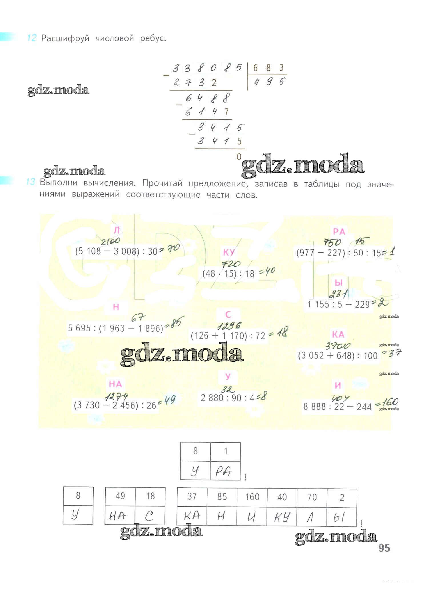 ОТВЕТ на задание № 95 Рабочая тетрадь по Математике 4 класс Дорофеев Перспектива
