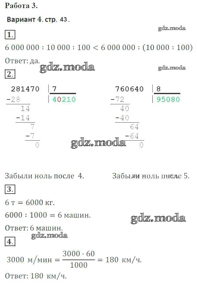 ГДЗ решение к заданию № 43 Математика 4 класс тетрадь для контрольных работ Рудницкая В.Н. Вентана-граф 2018 ФГОС бесплатно на гдз.мода!