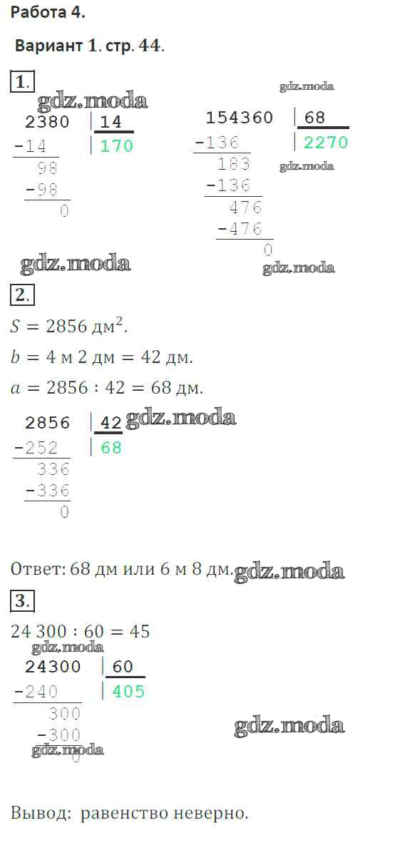 ГДЗ решение к заданию № 44 Математика 4 класс тетрадь для контрольных работ Рудницкая В.Н. Вентана-граф 2018 ФГОС бесплатно на гдз.мода!