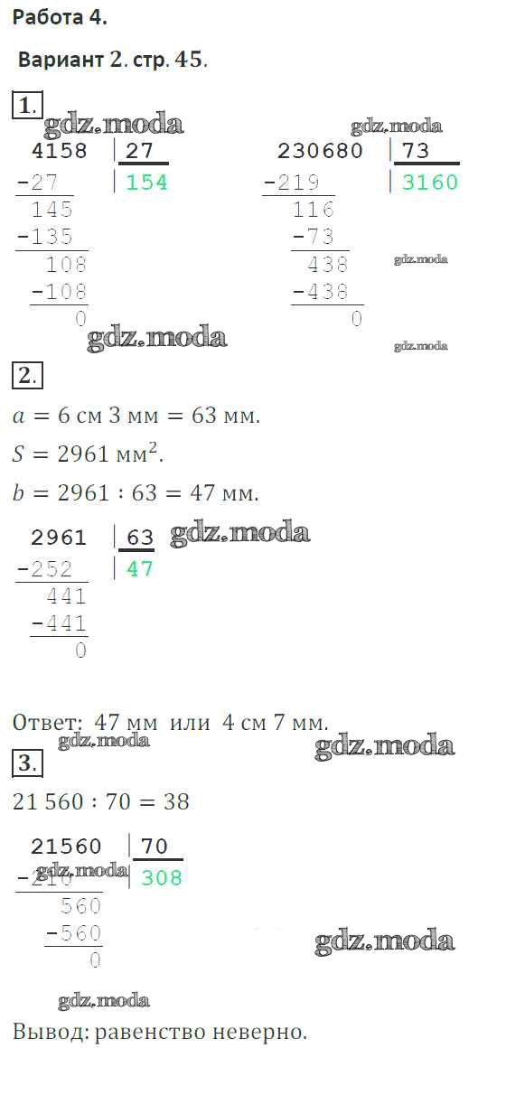 ГДЗ решение к заданию № 45 Математика 4 класс тетрадь для контрольных работ Рудницкая В.Н. Вентана-граф 2018 ФГОС бесплатно на гдз.мода!