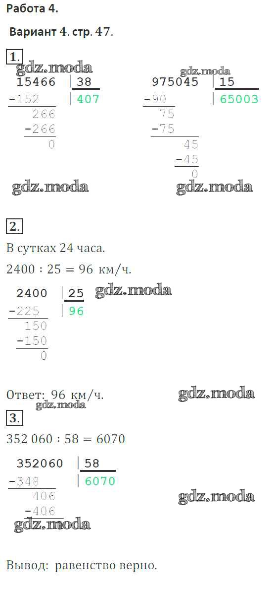 ГДЗ решение к заданию № 47 Математика 4 класс тетрадь для контрольных работ Рудницкая В.Н. Вентана-граф 2018 ФГОС бесплатно на гдз.мода!