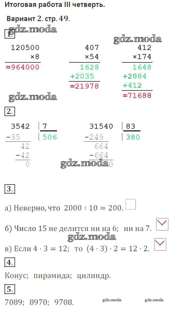 ГДЗ решение к заданию № 49 Математика 4 класс тетрадь для контрольных работ Рудницкая В.Н. Вентана-граф 2018 ФГОС бесплатно на гдз.мода!