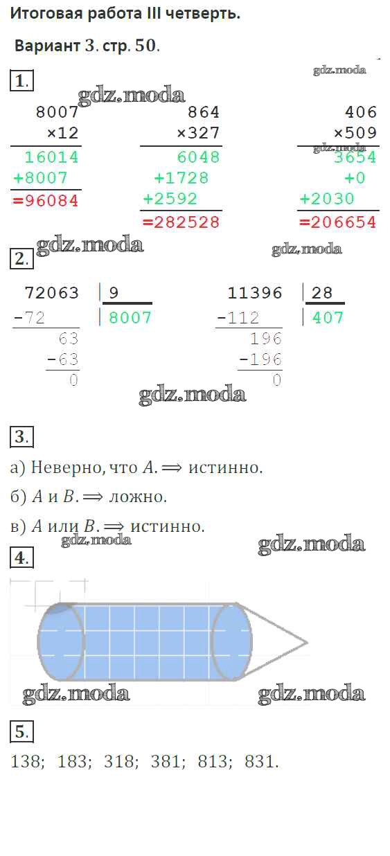 ГДЗ решение к заданию № 50 Математика 4 класс тетрадь для контрольных работ Рудницкая В.Н. Вентана-граф 2018 ФГОС бесплатно на гдз.мода!